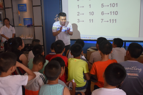 在一段精彩的“科技引领未来”的视频过后,孩子们开始畅谈自己的理想,梦想做科学家、做特警、做医生等等,天真的话语间,我们看到了孩子们身上的那份纯真,在陈述理由时,孩子们的话语也都充满了满满的正能量,虽说童言无忌,但也不禁让人为之感动。在随后的计算机知识展示和才艺展示环节,孩子们无不踊跃尝试,用自己刚学到的知识对电脑进行操作,娴熟的街舞动作和葫芦丝技巧也让在座的大家印象深刻。紧接着,以烽火戏诸侯典故引出的“二进制”通俗化讲解,也显露出孩子们对于计算机知识的浓厚兴趣和些许天赋。中间穿插进行的折纸活动,也极为有趣。