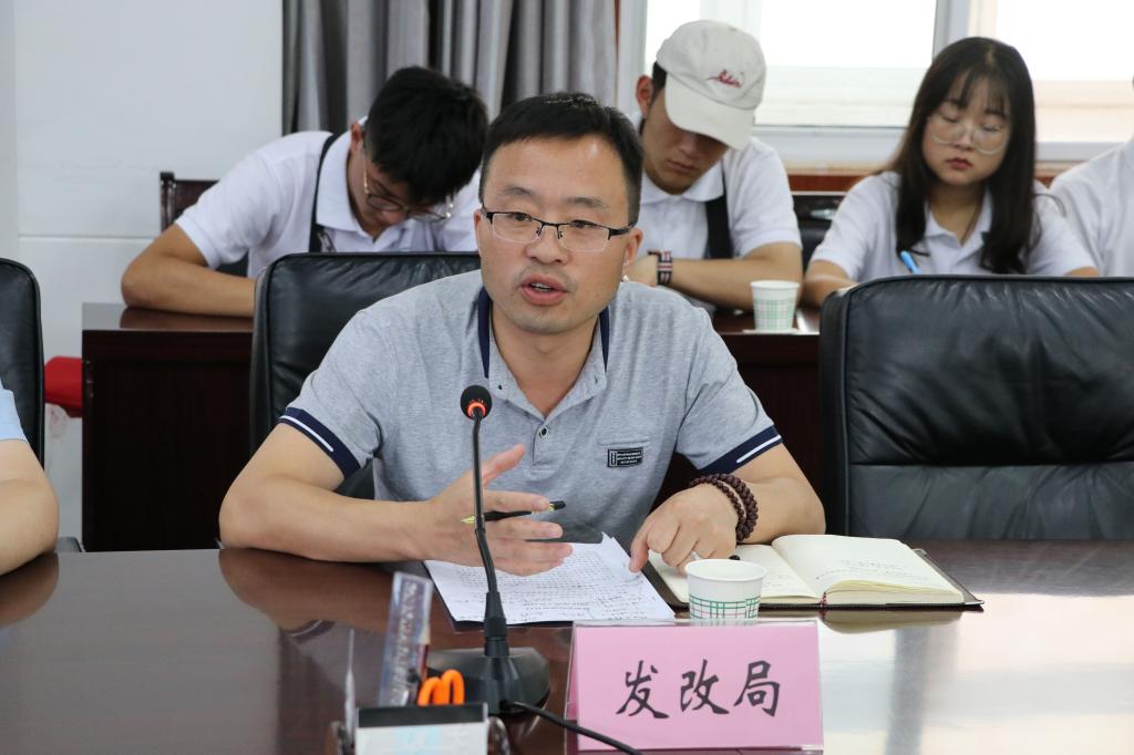 7月15日下午,9499www威尼斯暑期社会实践服务团与留坝县政府在留坝县政府第三会议室开展了座谈交流。留坝县副县长董寒光、县团委书记刘红、农业农村局主任郑国华、发改局主任任建忠等机关部门负责人与我们党委副书记周波、团总支书记朱成功以及全体实践团成员参加了此次座谈。座谈会由留坝县团委书记刘红主持。