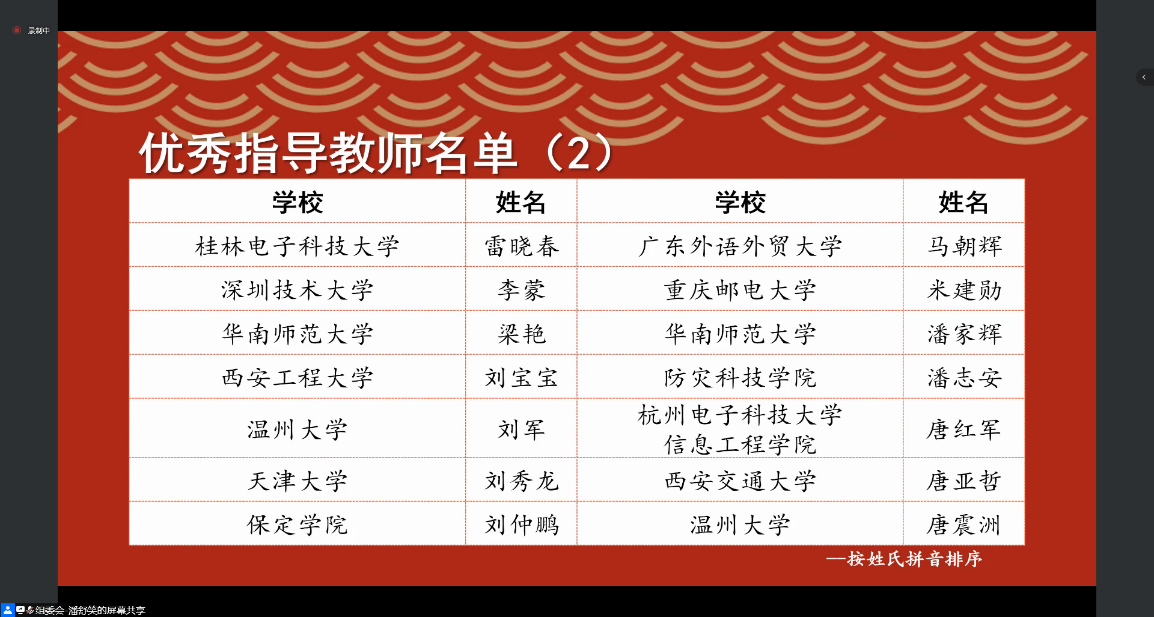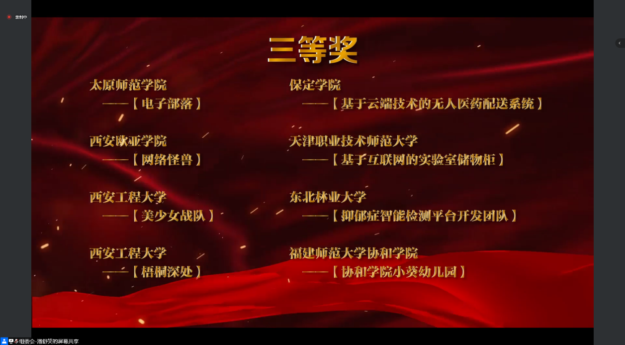 王伟、刘宝宝指导的作品《智能网络数据监控与分析系统》获得全国二等奖;《智能网络数据监控与分析系统商业计划书》、《智慧入侵检测系统商业计划书》、《智慧入侵检测系统》获得全国三等奖。竞赛组委会于2021年11月13日举行了网络在线颁奖典礼。(撰稿:刘宝宝 审核:薛涛)