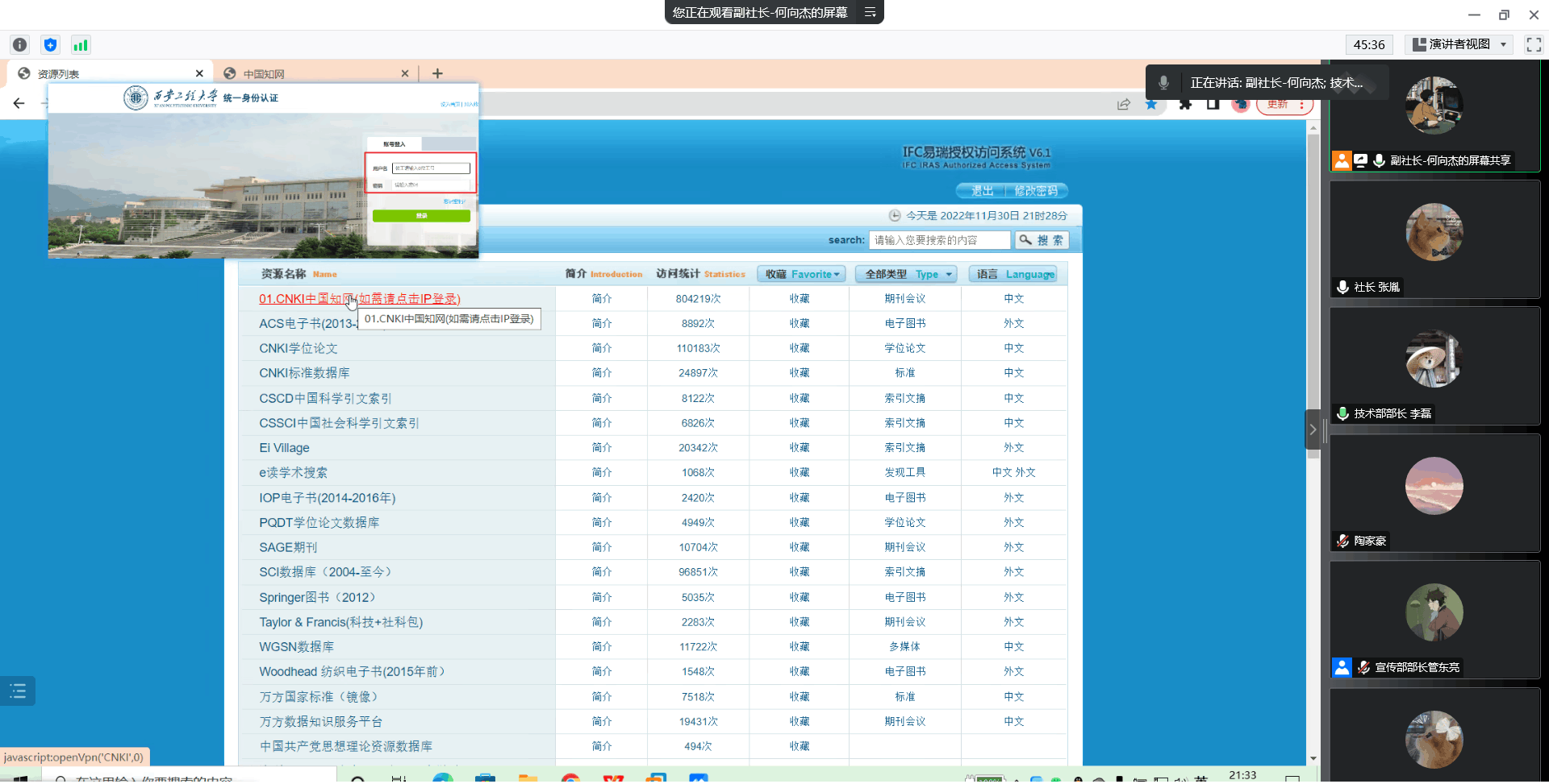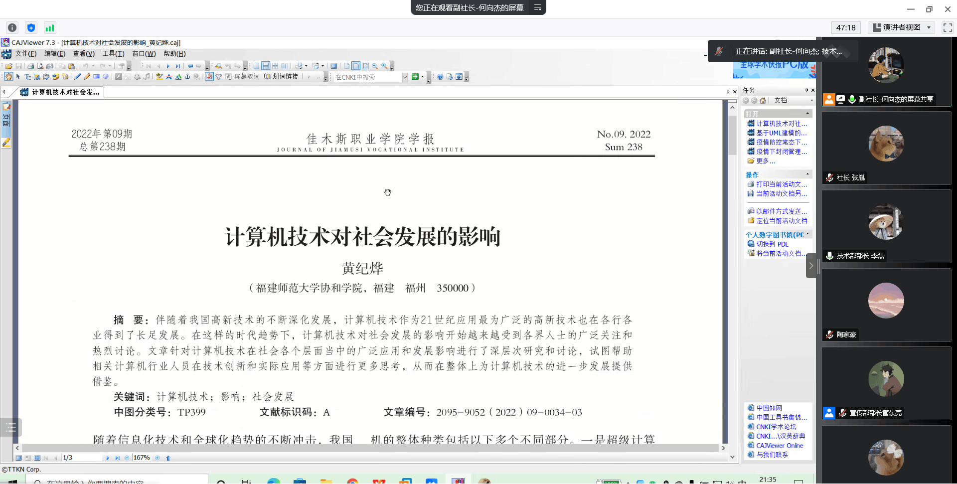 通过前一段时间的社团招新工作,9499www威尼斯计算机协会完成了新学年的招新活动。结合当下疫情现状和社员们的学习需求,协会于2022年11月23日在线上举办了“新生社员交流暨知网知识介绍会”。