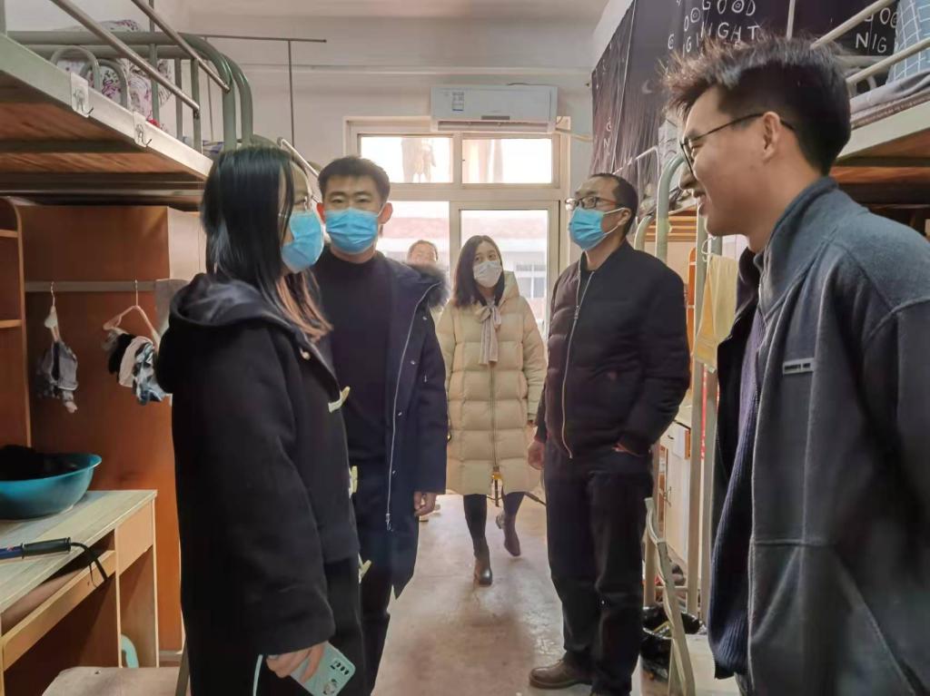 首先,学院党政班子成员对研究生实验室进行了安全检查,重点检查了环境卫生、用水用电安全、仪器设备是否完备和日常管理制度是否完善等方面。在检查过程中对每个实验室的安全与卫生隐患进行全面彻底排查,对存在的各个隐患问题进行逐一登记和整改。院领导与实验室负责人进行了及时的沟通,提出可以改进的措施,同时也对安全卫生保持良好的实验室的进行了表扬。其次,在学生公寓,党委副书记周波、全体辅导员与学生面对面交流,了解学生思想动态、生活学习情况,针对学生宿舍存在的安全隐患及时做了记录并安排人员跟进解决。周波特别强调,在冬季更应加强疫情防控措施,除按照常态化疫情防控的要求做好个人防护外,更应保持宿舍的通风换气每天至少三次以上,注意保持宿舍的清洁卫生和确保冬季用电安全,坚决抵制违章电器的使用。