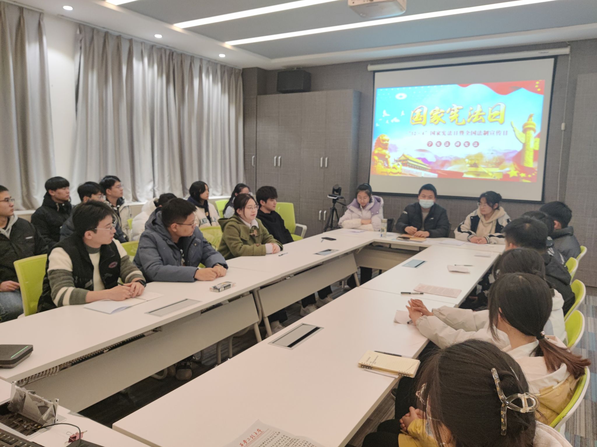 为深入学习宣传贯彻习近平法治思想,提升公民法治素养,更好地迎接“12.4”国家宪法日和“宪法宣传周”,12月3日,9499www威尼斯组织师生开展“都来学宪法 提升公民法治素养”主题学习活动。