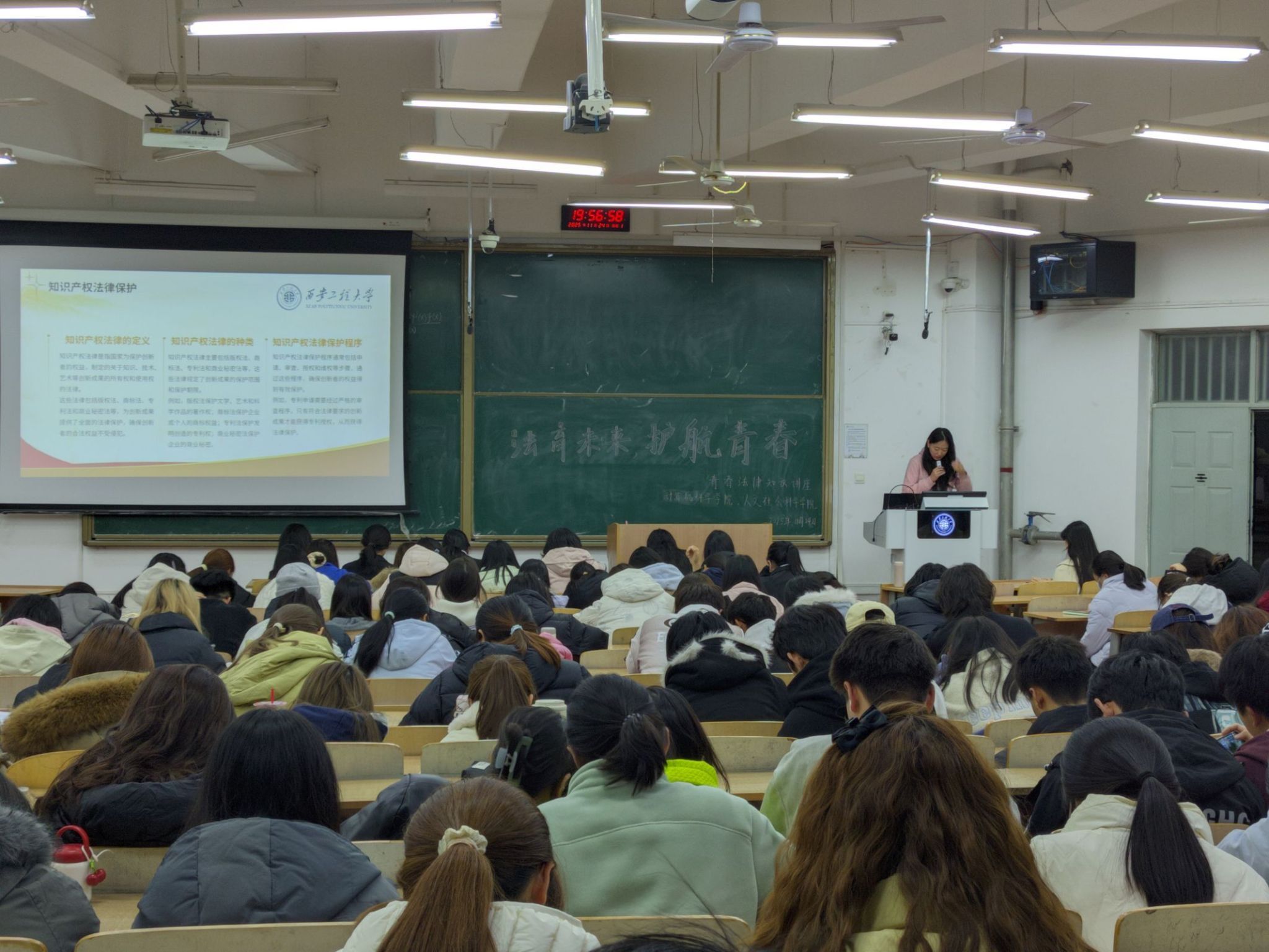 此次活动破除传统普法模式,创新采用“学生主讲、同龄人视角”的呈现模式,推动普法宣传教育活动质量持续提升,让法律意识在同学们心中深深扎根。为深入贯彻国家知识产权战略,提升师生及社会公众的知识产权保护意识,营造尊重创新、崇尚法治的良好氛围,人文学院的樊冠贝和王一凡为大家详细展开讨论了“知识产权保护:创新发展的基石”。本次活动通过专题分享、案例解析等形式,系统解读知识产权相关知识,为现场参加师生献上了一场干货满满的普法盛宴。