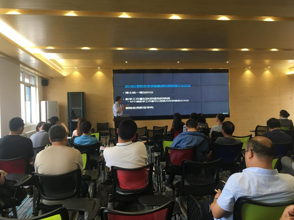 会上,院长薛涛对新学期的工作进行了安排部署,他紧紧围绕学科建设、师资队伍和人才队伍建设、科研教学、国内外学术交流、研究生推免等方面做出了具体安排,同时详细阐释了教师科研绩效计分办法的改动部分。