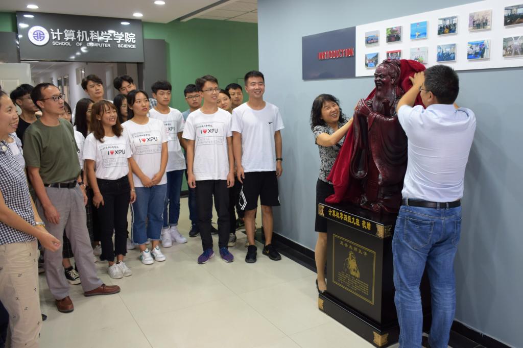 座谈会后,学院进行了校友捐赠孔子像的揭幕仪式。该孔子像由我们2008届计算机科学与技术9班毕业生所捐赠,作为从我们毕业10年的学生,他们正在各自岗位上创造着自己的价值、奉献着自己的青春,通过捐赠孔子像来表达自己感恩母校、感念师恩、祝福母校桃李满园的美好希冀。