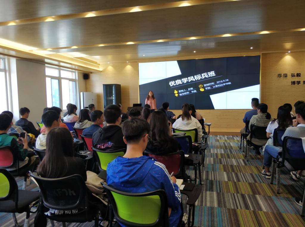 入围此次“优良学风标兵班”答辩的9个班级是从前期评定的“优良学风示范班”中产生,其中2015级有3个,2016级有2个,2017级有4个。答辩过程中,各候选班级通过PPT向大家展示了各自班级建设、学风状况、获奖情况、班级活动等。最终通过评委讨论打分,一致决定推荐2016级软件工程1班为我们2017-2018学年“优良学风标兵班”。