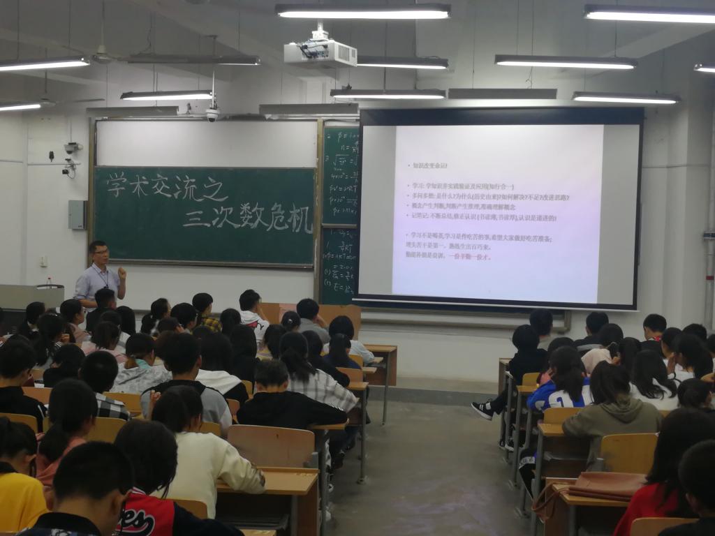 9月28日晚,学院在临潼校区B栋教学楼举办新生入学教育第一场学科专题讲座。学院学科基础系教师蔡桂洲做了题为“三次数学危机及启示”的学科专题讲座。学院全体辅导员及18级351名新生一起聆听了本场讲座。