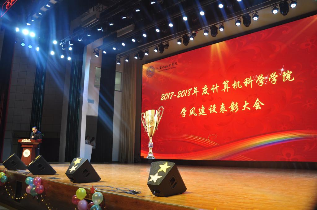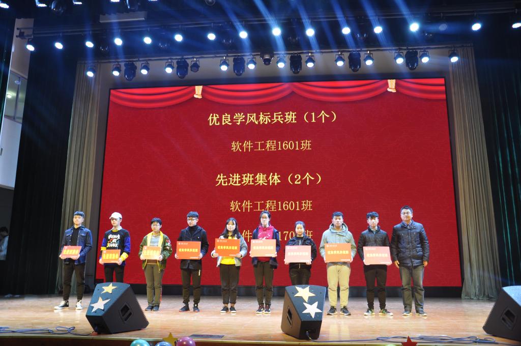 学风建设表彰环节由院党委副书记周波主持。院党委书记王雅慧宣读了表彰文件,之后,学院分别对国家奖学金获得者、国家励志奖学金获得者、社会专项奖学金获得者、优秀学生、优秀学生干部、各类学科竞赛等的获奖集体和先进个人进行了表彰。2017-2018学年国家奖学金获得者,2016级数字媒体技术1班李月作为学生代表发言,她用认真、自律、创新概括了自己的大学生活,勉励所有学弟学妹拼搏奋进,在工程大绽放自己最美好的青春。院长薛涛做了总结讲话,他激励所有学生以获奖同学为榜样,积极奋进,努力探索,利用好大学时光,习得一技之长,练就一身本领。
