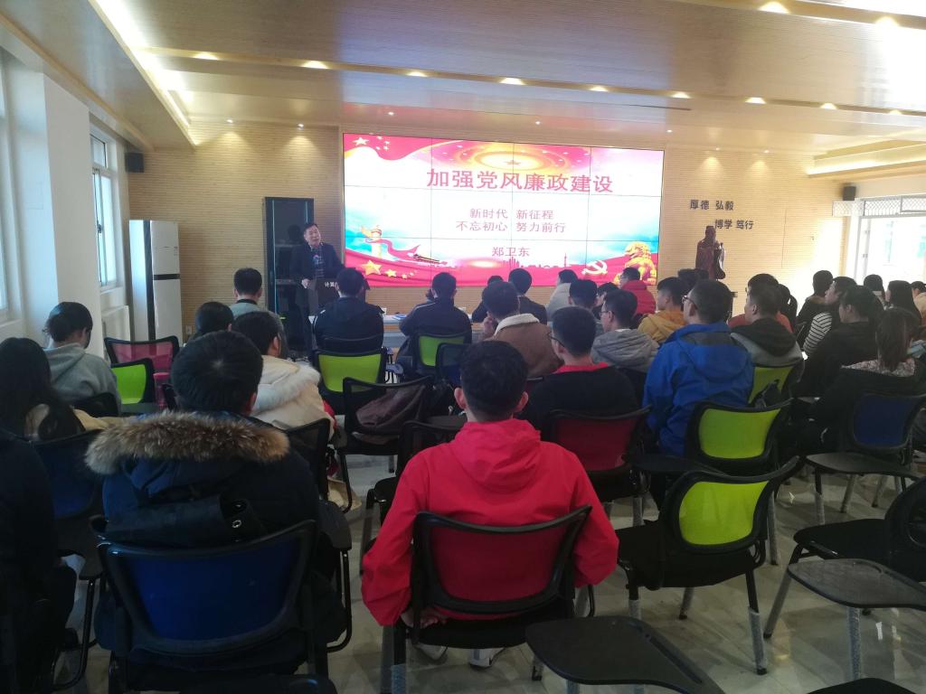 郑卫东老师从加强纪律建设的六个着力点;四风新表现的特征、诱因及其治理;新时代加强党性修养和锻炼的方法;加强党对反腐败工作的集中统一领导等四个方面进行了生动的讲解,列举陕西省近些年查处的典型案例,教育和告诫同志们必须讲纪律守规矩,一定牢记党的宗旨,做到廉洁自律、尽职尽责。结合当前开展的“以案促改”学习教育,要求大家要充分认识“以案促改”工作的重要性,要加强组织领导,精心组织实施,抓好警示教育,查摆剖析问题,健全完善制度机制,堵塞体制机制漏洞,营造良好的校园政治生态。