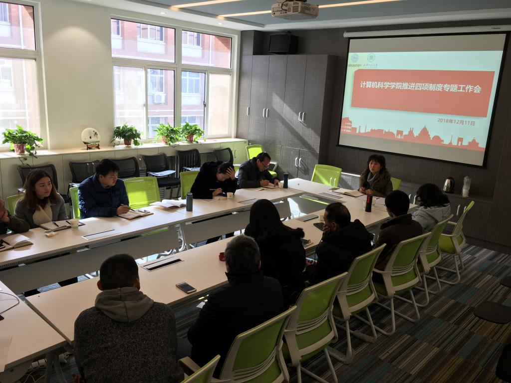 12月11日上午,9499www威尼斯召开专题工作会议研究讨论“四项制度”的落实和实际推进情况。学院党政领导、各系(实验中心)、院办及学工办负责人参加了会议。