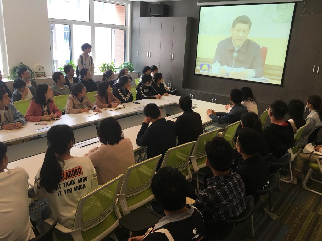 座谈会上,大家观看了“4月19日习近平总书记在中共中央政治局第十四次集体学习时的讲话视频”。总书记在讲话中强调,要加强对五四运动和五四精神的研究,以引导广大青年在五四精神激励下,为决胜全面建成小康社会、夺取新时代中国特色社会主义伟大胜利、实现中华民族伟大复兴的中国梦不懈奋斗。
