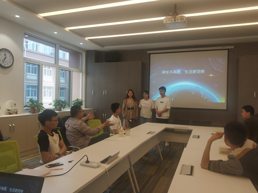 我们18级研究生夏邢、郭卫霞、高亚山就参赛项目《共享车位——iParking智慧停车平台》分别从项目简介、产品功能、应用推广、商业模式及效益分析等方面进行详细讲述,就参会人员提出的问题进行一一解答。薛涛院长就该项目应用推广、开发技术、运营成本、可预见问题等方面提出建议并给予系统指导,同时要求参会学生都能开拓思维,大胆创新,发挥专业优势,积极参加各类科技竞赛,以科技竞赛提升知识储备,为学院的发展及个人成长成才贡献力量。