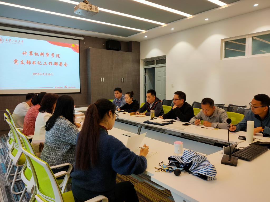 9月19日,9499www威尼斯在临潼校区7号楼426会议室召开党支部书记工作会议,全面部署“不忘初心、牢记使命”主题教育工作。会议由院党委书记王雅慧主持。