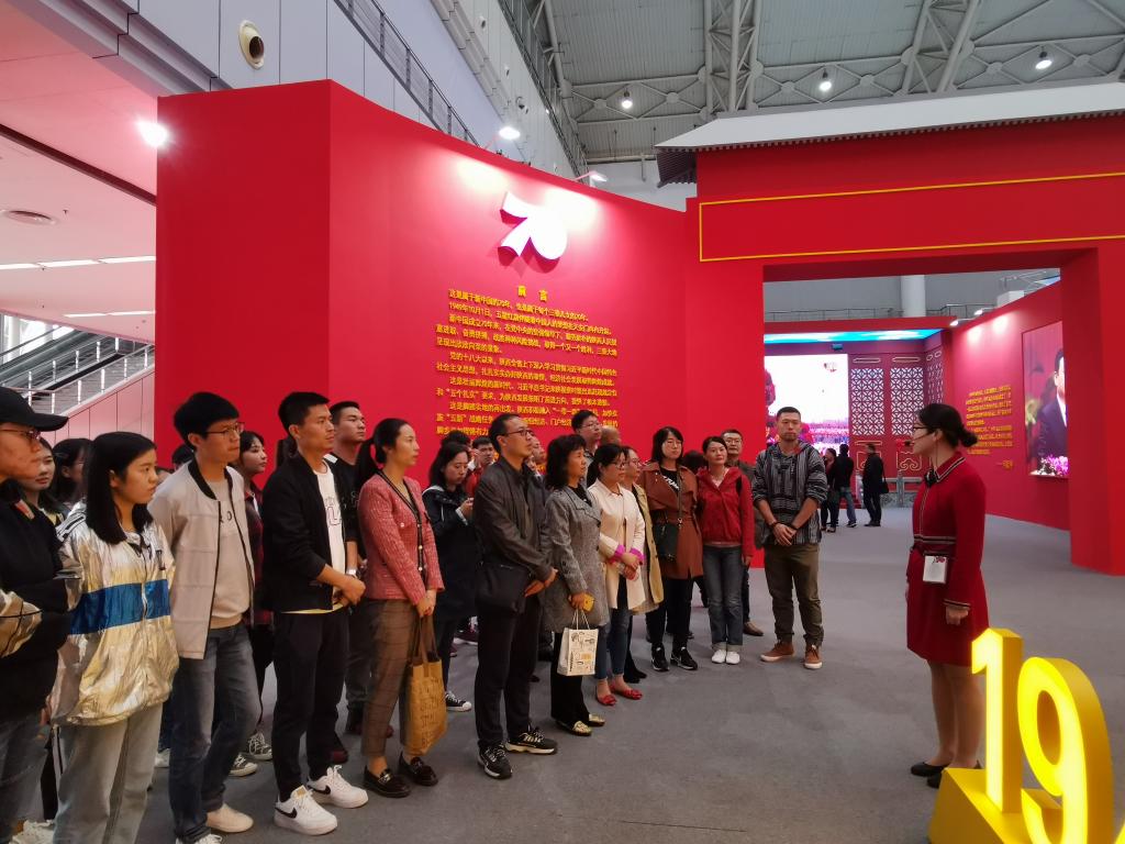 下午14时,全体党员到达西安曲江国际会展中心A展馆“陕西省庆祝中华人民共和国成立70周年成就展”展厅,伴随着讲解员的讲解和引导,全体党员在历史的画卷和照片印记中见证着新中国和陕西省的快速发展。本次展览会共设家国情怀、追赶超越、不忘初心三大模块,以延安时期陕西发展为起点,全方位、立体化的展示了陕西省在社会主义建设时期、改革开放时期和新时代下的生活风貌。党员们一边认真地参观展览,一边热烈地交流讨论。