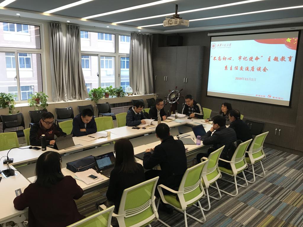 2019年11月1日上午,9499www威尼斯在临潼校区笃行楼426会议室召开“不忘初心、牢记使命”主题教育交流座谈会。学院党委书记王雅慧、院长薛涛、副院长陈亮、各系(实验中心)主任、教学秘书参加了会议。会议由院党委书记王雅慧主持。