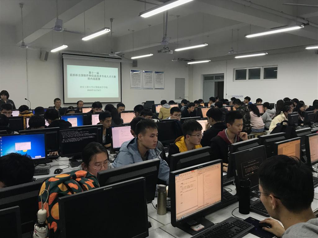 2019年11月6日晚,9499www威尼斯在临潼校区7号楼举办“第十一届蓝桥杯全国软件技术人才大赛”校内选拔赛。旨在培养我们学生对软件编程的兴趣,强化实践动手能力及创新思维能力,加快我们计算机相关专业教学改革与创新,切实提高人才培养质量。