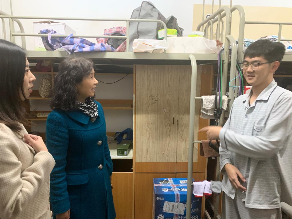 学院领导老师先后来到4号宿舍楼和7号宿舍楼,实地查看了研究生宿舍的安全卫生状况和内部环境设施。走访过程中,领导老师与研究生们亲切交谈,仔细询问每位研究生的学习、科研和生活状况。针对宿舍安全卫生问题,王雅慧特别叮嘱大家一定要注意冬季用电安全,千万不要使用大功率违规电器,要注意好个人人身财务安全,宿舍要勤打扫、多通风,避免流行病传播。通过检查发现,我们研究生宿舍整体情况良好。
