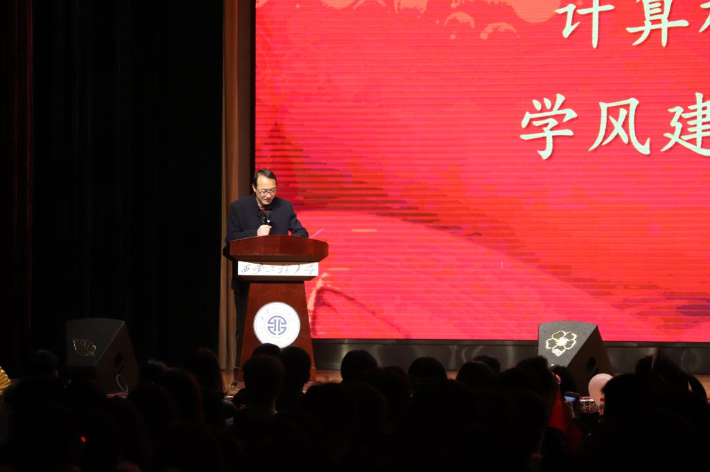学风建设表彰环节由院党委副书记周波主持,大会在庄严的国歌声中拉开帷幕。院党委书记王雅慧宣读了表彰文件,各类先进班集体、优秀个人获奖者依次上台,接受表彰。软件1701班单颖欣同学作为学生代表发言,她勉励在场同学不忘初心、不负过往,通过努力塑造更加优秀、更加美好的自己。薛涛院长做了总结讲话,他激励大家珍惜大学时光,努力提升各方面素养,不懈追逐梦想。院党委副书记周波也号召大家团结拼搏、吃苦耐劳、向优秀学习,共同创造计算机学院美好的明天。