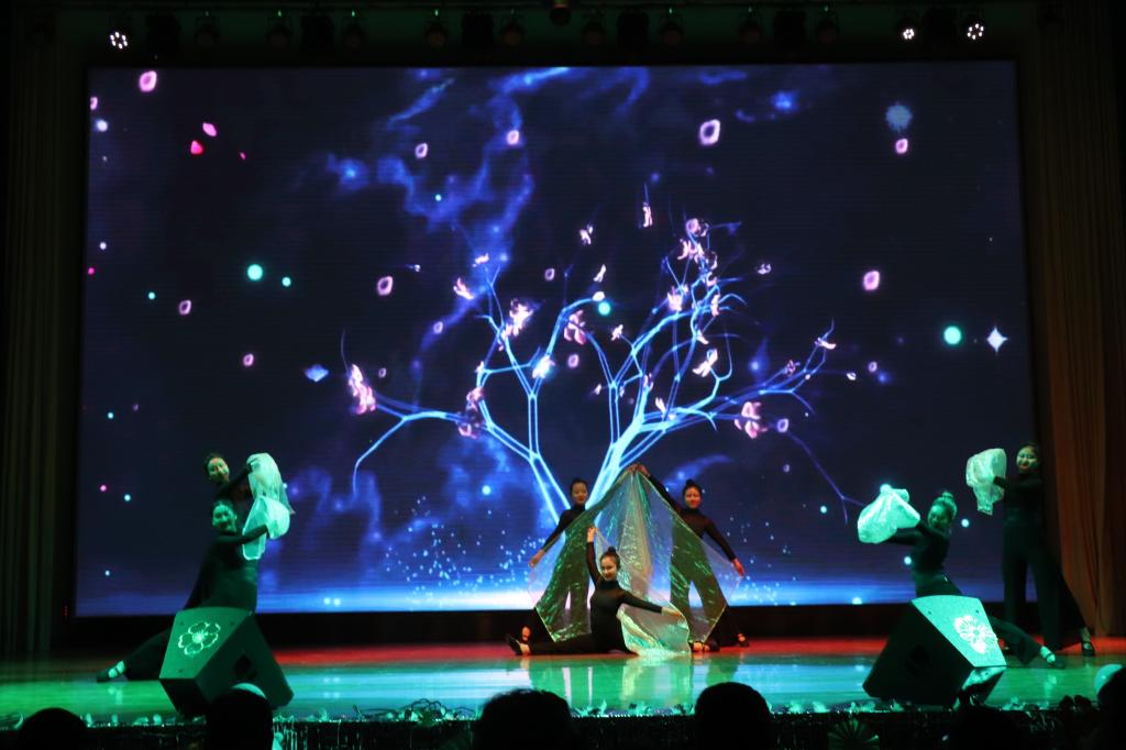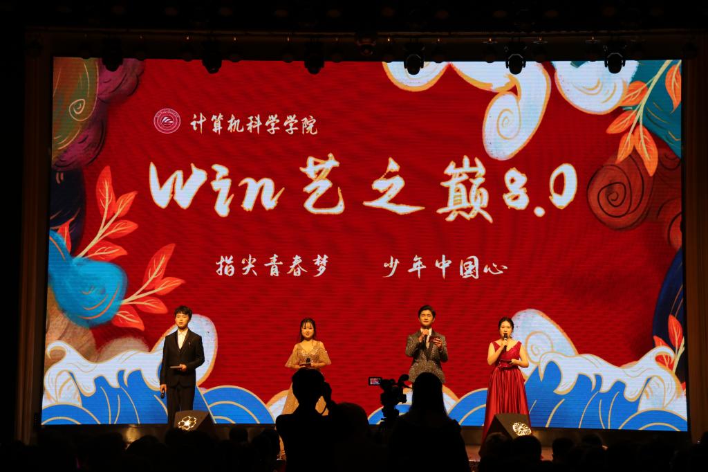 随后,精彩纷呈的win艺之巅8.0晚会在魔性的抖肩舞和洋溢青春气息《响扇》开场舞中拉开帷幕。文艺类节目有婉转曼妙的纱巾舞蹈《遇见》,悠扬婉转的对唱歌曲《失落沙洲》,还有成长中伴随喜怒哀乐的情景歌舞剧《一路成年》,歌唱青春的《你曾是少年》以及老师们带来的歌曲《想把我唱给你听》和《成都》等;语言类节目有严肃但又诙谐风趣的小品《计算机院最新闻》,令人捧腹的《满腹经纶》相声,回味纯真爱情的情景剧《等你下课》,阐释亲情的小品《爱未晚》和铿锵有力的朗诵《如愿》等。最后,在全场师生合唱的《我和我的祖国》的美妙歌声中,晚会落下了帷幕。