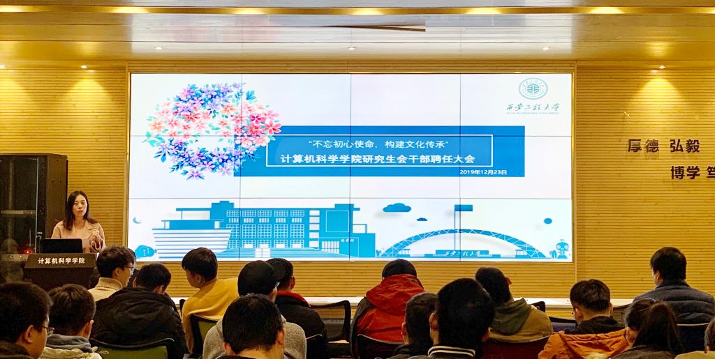 12月23日,9499www威尼斯在7-613学术报告厅召开“不忘初心使命、构建研会文化”研究生会干部聘任大会。学院党委书记王雅慧、院长薛涛、党委副书记周波、副院长陈金广、陈亮、学工办主任朱瑾、团总支书记朱成功、辅导员张鑫、薛绍凡及团学科组织代表出席了此次大会。会议由研究生辅导员程帅主持。