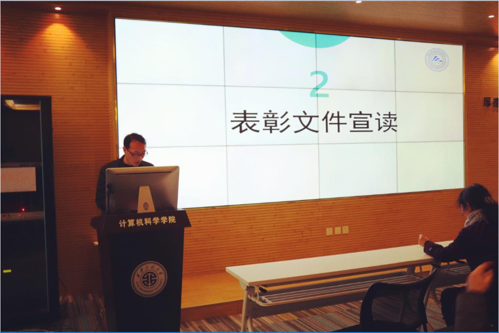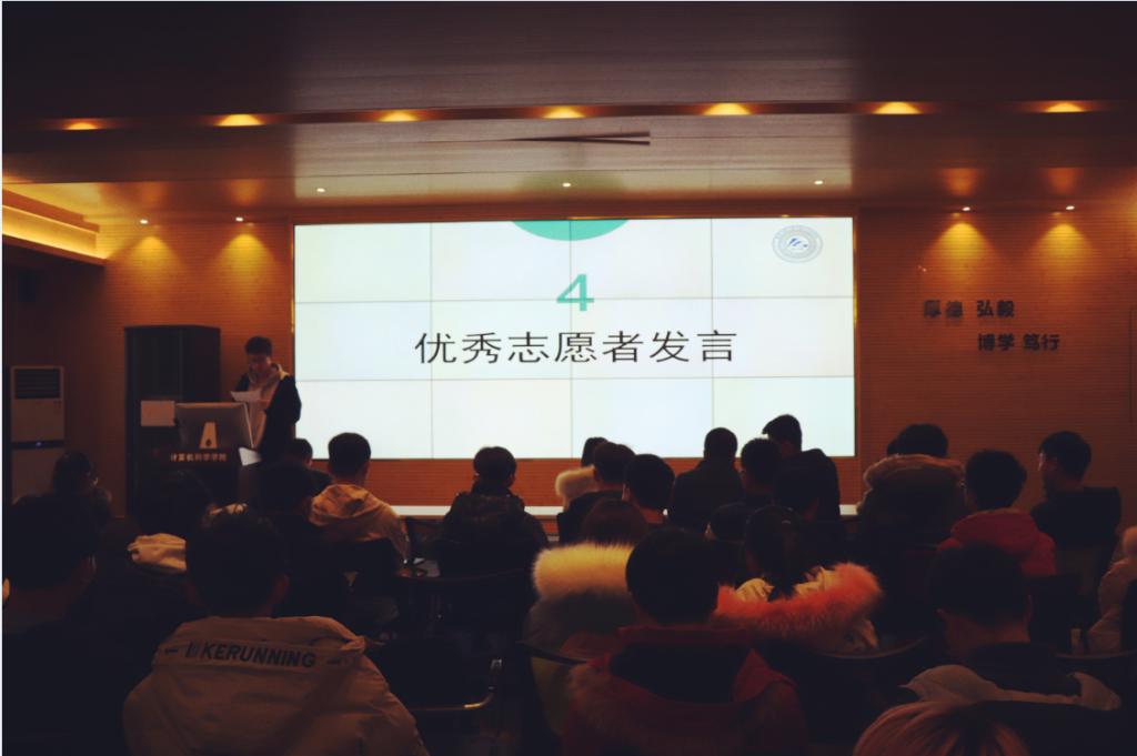 接下来,2019级计算机科学与技术卓越1班学生丁冠星作为青年志愿者代表分享了自己自入校以来参与的志愿服务活动以及收获,他号召全体志愿者积极投身志愿服务活动中,发挥大学生模范带头作用,为学院、学校贡献自己的一份力量。