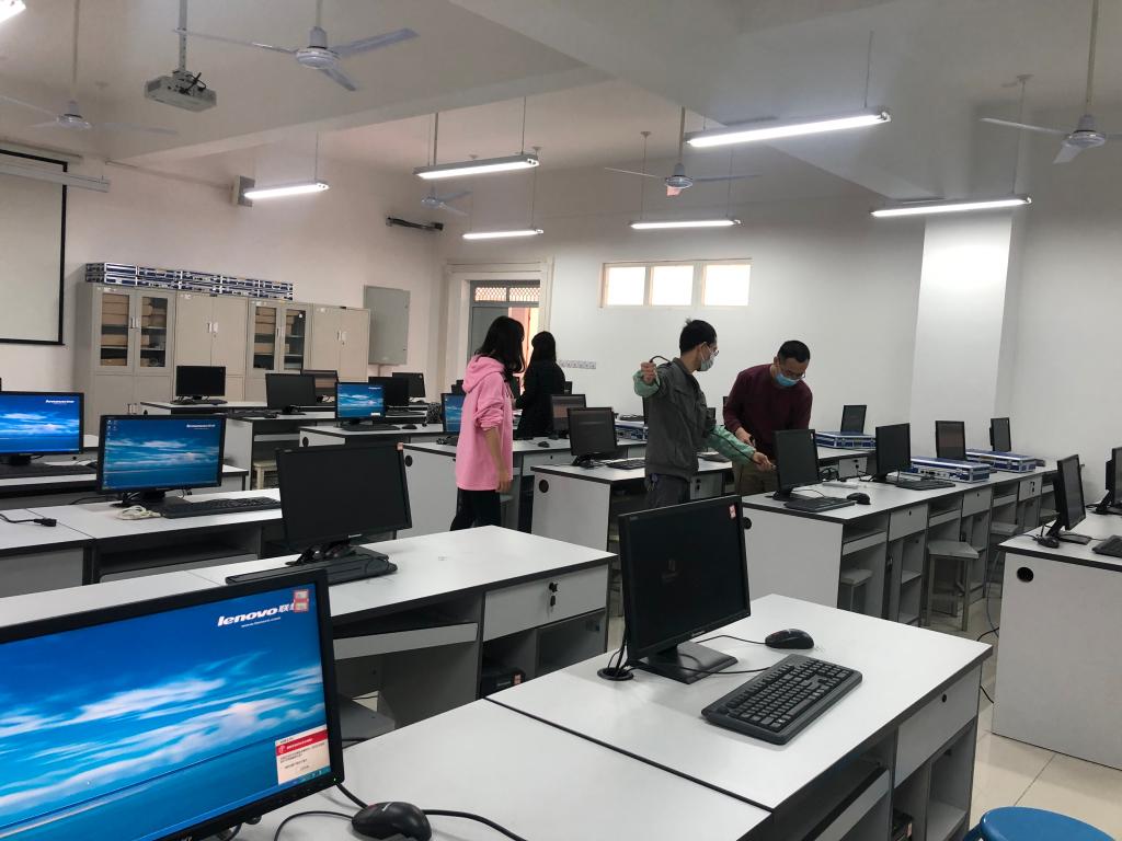 4月13日全天及14日上午,全体实验教师对我们所有实验室进行全面的卫生打扫和消杀工作,确保无死角。分别使用稀释后含有效氯浓度500mg/L的消毒液,对所有桌面进行擦拭,使用75%浓度的酒精对所有计算机键盘和鼠标进行消毒。此外,在完成地面清扫后,再使用稀释后含有效氯浓度500mg/L的消毒液对地面进行清洁。当天下午及15日全天,全体实验教师又对所有实验室进行设备故障排查及检修,并对故障进行处理、报备记录。保证实验设备完好率达到学校实验室管理处的要求,确保正式开学复课后的实验教学工作顺利展开。