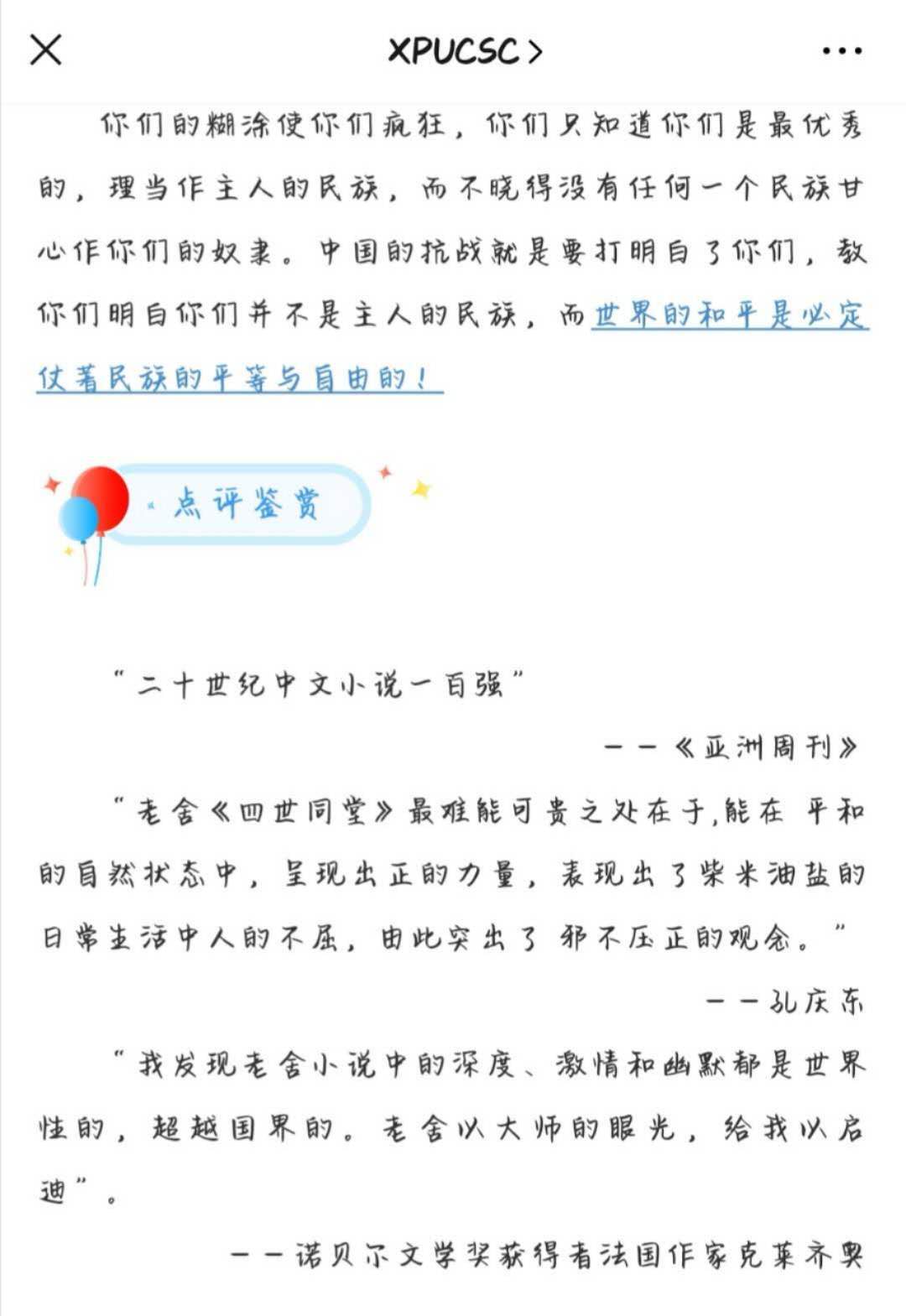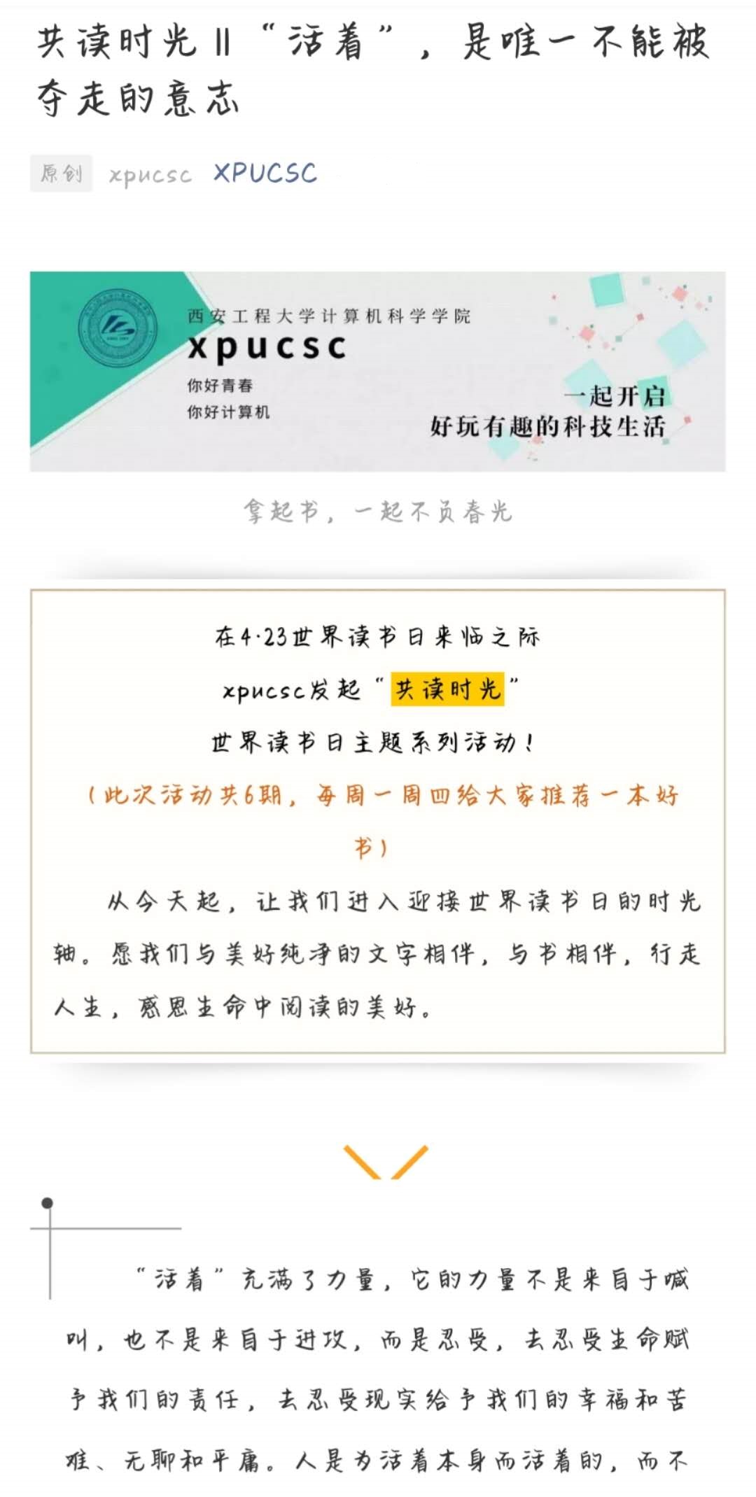 为迎接第25个世界读书日的到来,在学院范围内营造浓郁的读书氛围,丰富疫情期间同学们的精神文化生活,提高学生的人文素养,9499www威尼斯于4月23日起至本学期结束,面向学院师生持续开展了以“共读时光”为主题的线上图书推荐活动,在学院掀起了一股读书热潮。
