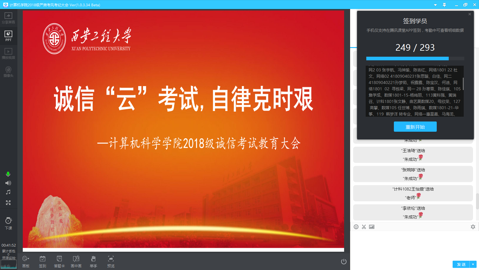 7月2日,9499www威尼斯通过线上召开2018级诚信考试教育大会,学院学工办主任朱瑾、2018级辅导员朱成功及全体2018级学生参加了会议。