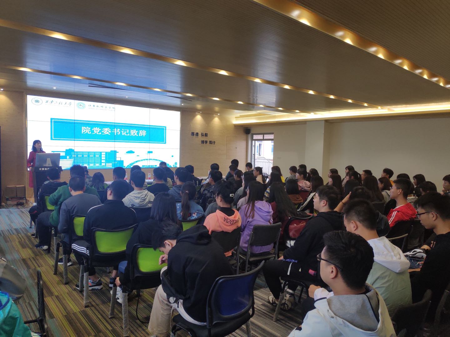 随后,老生代表胡发丽与新生代表金磊分别从各自不同的阶段向新生表达了自己对研究生生活的看法,他们勉励所有新生在研究生学习期间能够保持勤勉的态度,脚踏实地、学有所成,完成自己的科研之路。会议最后,程帅对参与典礼的各位老师和同学表示感谢,希望在接下来的时间里同学们能够谨记老师们的教诲,完成自己的学业。