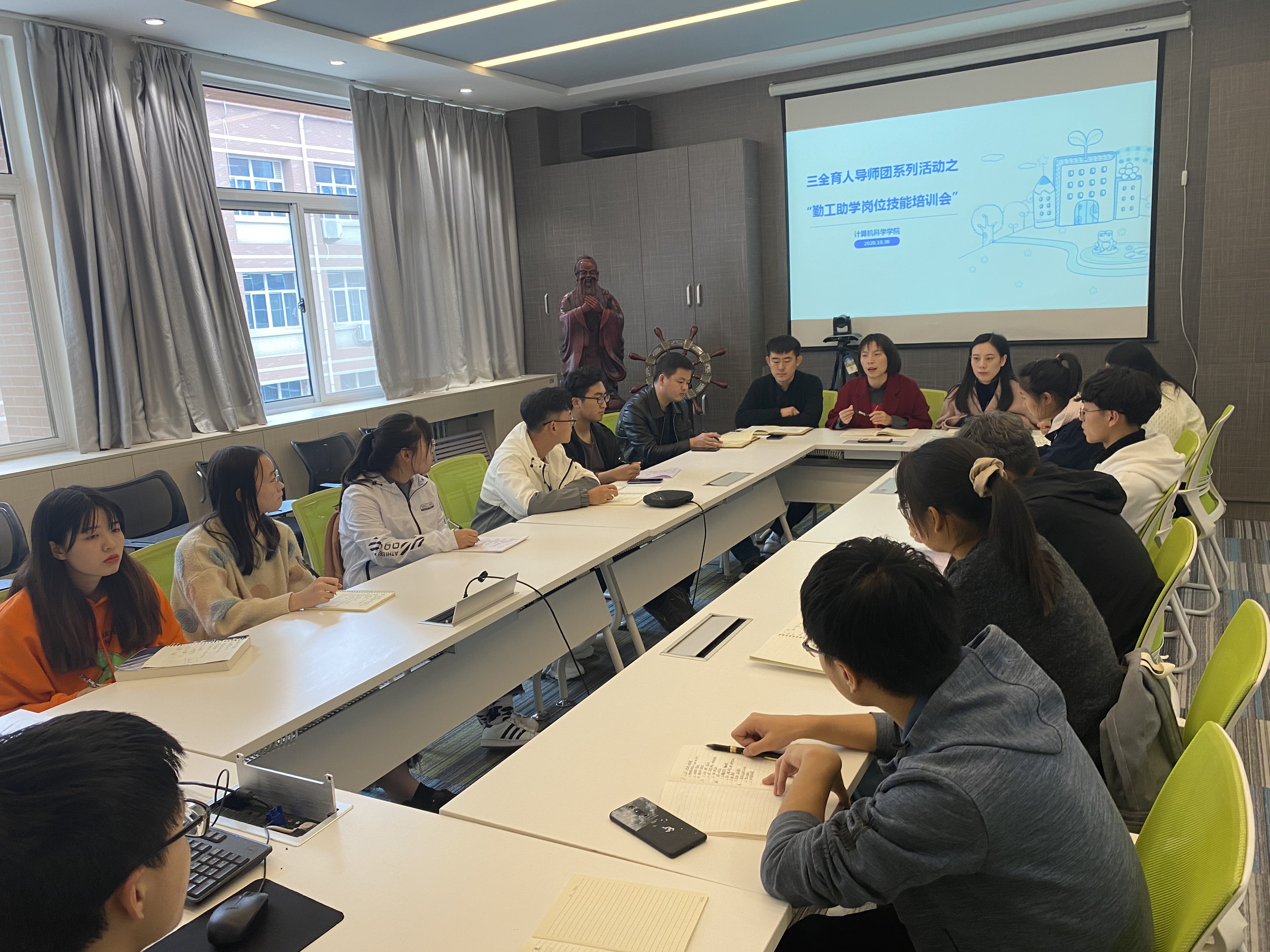 10月30日中午,9499www威尼斯在7-426会议室举办了“三全育人导师团”系列活动之勤工助学岗位技能培训会,学院全体辅导员及新任学生助理参会。会议由学工办主任朱瑾主持。