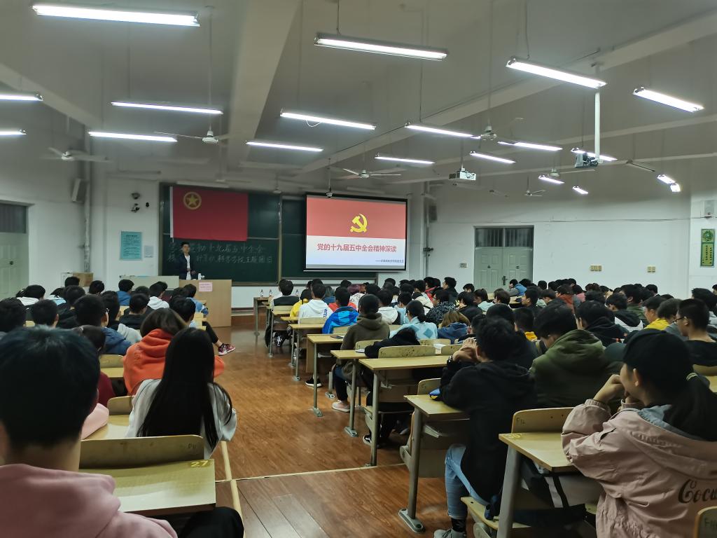 11月18日,学院在临潼校区B137教室举办“学深悟透党的十九届五中全会精神”主题团日活动,学院团总支书记朱成功,团学组织学生干部,20级各团支部所有青年学生300余人共同参加了此次学习会。会上,朱成功围绕习近平总书记在全会上的重要讲话精神、党的十九届五中全会的重大意义,构建新发展格局的战略构想和重要着力点、如何实现2035年远景目标等方面进行详细的解读。他对各团支部提出要求,要以此次学习会为基础,积极组织各支部全体团员,认真学习全会精神,深刻领会精神实质,真正做到学有所成,学有所获。