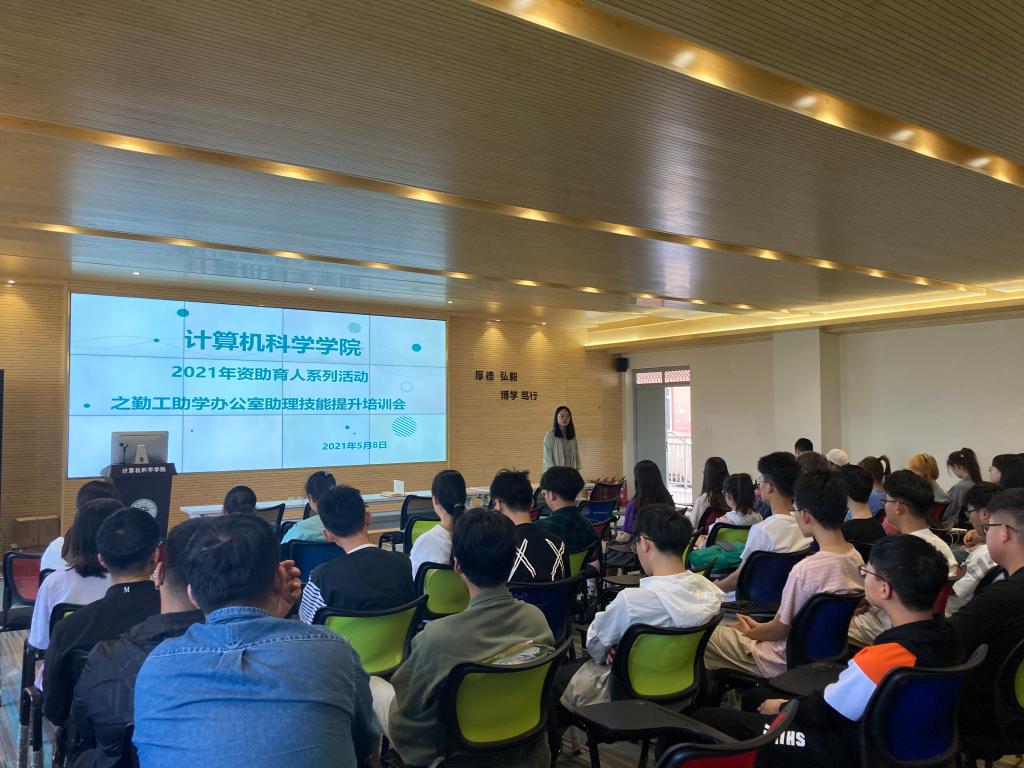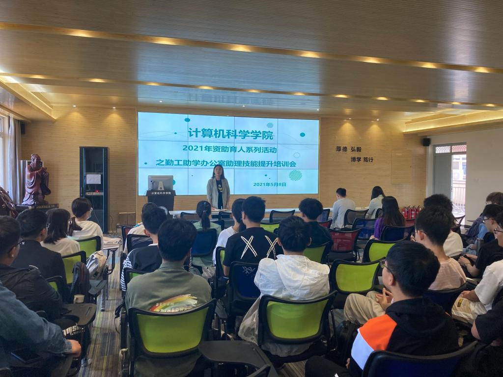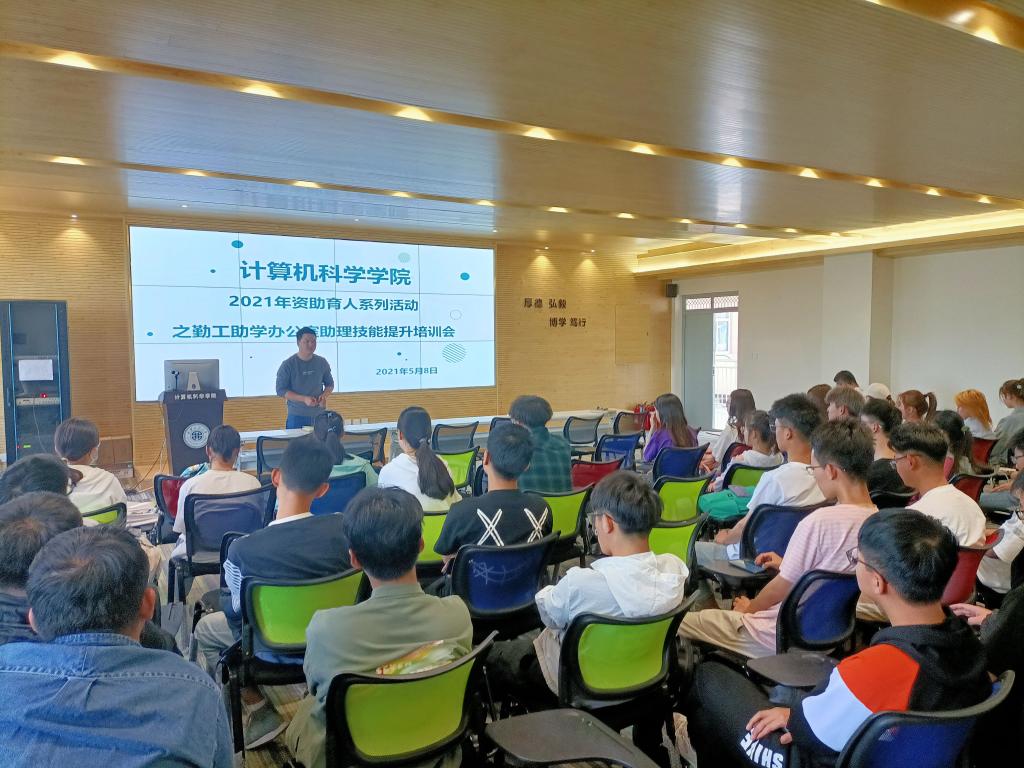 5月8日,9499www威尼斯在笃行楼614学术报告厅举办资助育人系列活动之勤工助学办公室助理技能提升培训会。学院学工办主任朱瑾、团总支书记薛绍凡、学生资助专项辅导员张鑫、2020级辅导员左温慧及全体勤工助学办公室助理50余人参会。