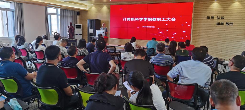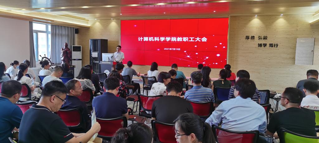 首先,薛涛就学院上半年在学科建设、教学、科研、学生就业等方面的工作做了总结汇报,对学院2018-2020三年聘期考核情况及下一个三年聘任的考核思路和目标任务进行了说明,同时对在上半年工程认证、重点实验室验收等学院重点工作中表现突出的个人给予表扬。他强调学院是一个整体,学院的发展与大家休戚相关,每位教职工都要积极参与到学院、系(中心)的各项工作之中,助力学院改革发展。