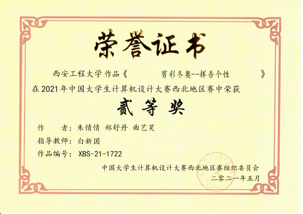 2021年5月中旬,中国大学生计算机设计大赛西北地区赛在西安文理学院举办,本届赛事采用线上评审方式。比赛共收到近60所高校的1800余件作品参赛,我们在学校教务处的大力支持下,9499www威尼斯经过精心组织、认真备战,在学校范围内共选拔出12件作品。此次比赛共有1592件作品入围西北地区决赛。