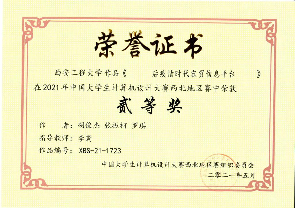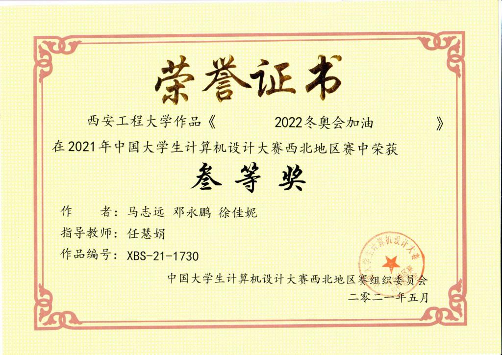 我们学生在2021年中国大学生计算机设计大赛西北地区赛中荣获佳绩