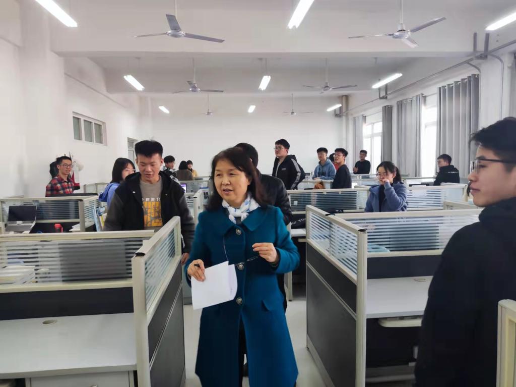随后,学院领导老师一次参观了各个小实验室,针对各实验室的整体情况进行打分。老师们检查的时候都十分认真,不放过每一个小角落,与此同时还指出每个实验室的不足之处,并与同学们亲切交谈,要求同学们继续保持良好的实验室环境。