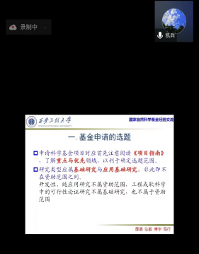 学术沙龙由院长薛涛教授主持,十余名拟申报2023年度的国家自然科学基金项目的中青年教师参加了本次活动。在学术沙龙活动上,我们张凯兵教授为我们青年教师做了题为《国家自然科学基金撰写的心得与体会》的学术报告。