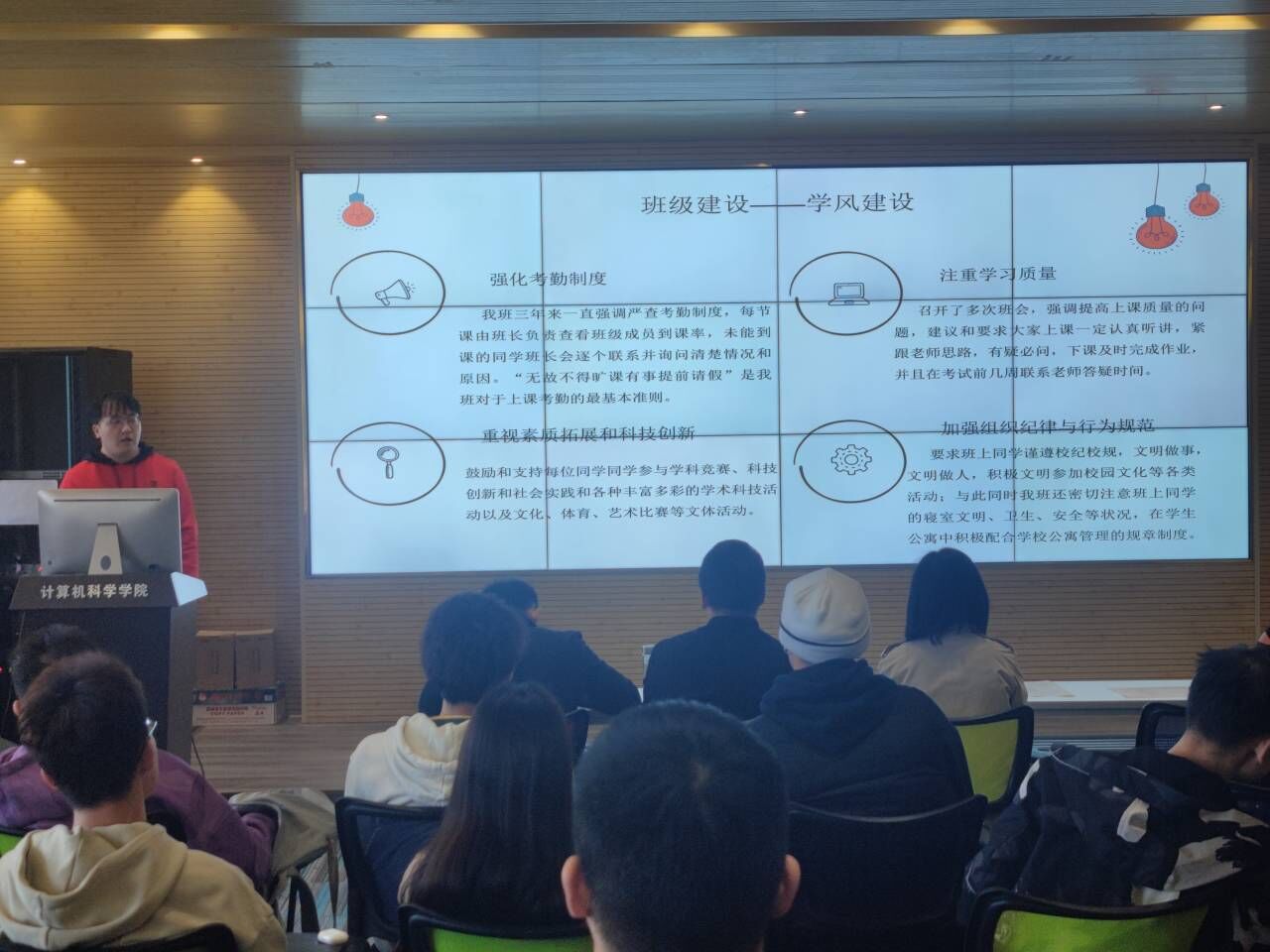 为进一步加强班集体在校园学风建设中的凝聚作用,营造进取拼搏的学习环境和团结奋进的班级风貌,切实推进我们班风和学风建设,发挥典型示范作用,9499www威尼斯于10月17日在7号楼613报告厅举行2021-2022学年“优良学风示范班”答辩会,学院党委副书记赵勇进、全体辅导员及各年级创建班级代表参加本次活动,22级各班班长、团支书现场观摩学习。