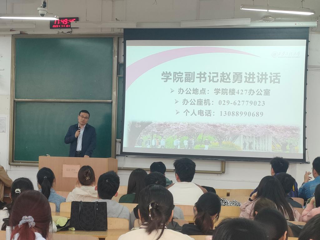 为加强学风建设,营造优良学风氛围,帮助2020级学生更早地了解考研政策和形势、确定考研目标、坚定备考信心,激励学生以踔厉奋发、笃行不怠的积极心态迎接考研备战,2023年4月10日,9499www威尼斯在临潼校区教学楼B335举办学风建设系列活动之2020级学生考研动员大会。学院党委副书记赵勇进、副院长张凯兵、2020级辅导员左温慧、学院优秀研究生代表毕明洋、王雅妮以及2020级考研备考学生共200余人参加了本次大会,大会由左温慧主持。