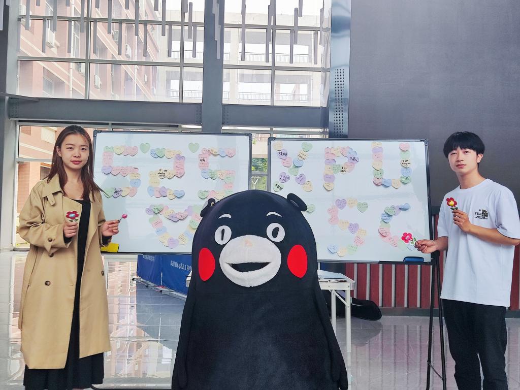 “5·25”的谐音为“我爱我”,意为提醒学生关爱自己、了解自己、接纳自己。活动通过拥抱人形玩偶以及书写心愿便利贴的方式展开,吸引了众多研究生和本科生的参与。大家纷纷与玩偶合影并在便利贴上写下了自己想说的话,如“努力拼搏,我要继续努力成为更好的自己!”、“爱自己,爱生活”、“希望家人朋友永远健康幸福”等等各式各样真挚的语言写出了对自己、对他人美好的祝愿,同时宣泄了积压在心中的忧愁、苦闷情绪、疏导了压力。随着老师们的参与,现场的氛围被推上了高潮,师生互动祝福,让真诚的爱弥漫全场。