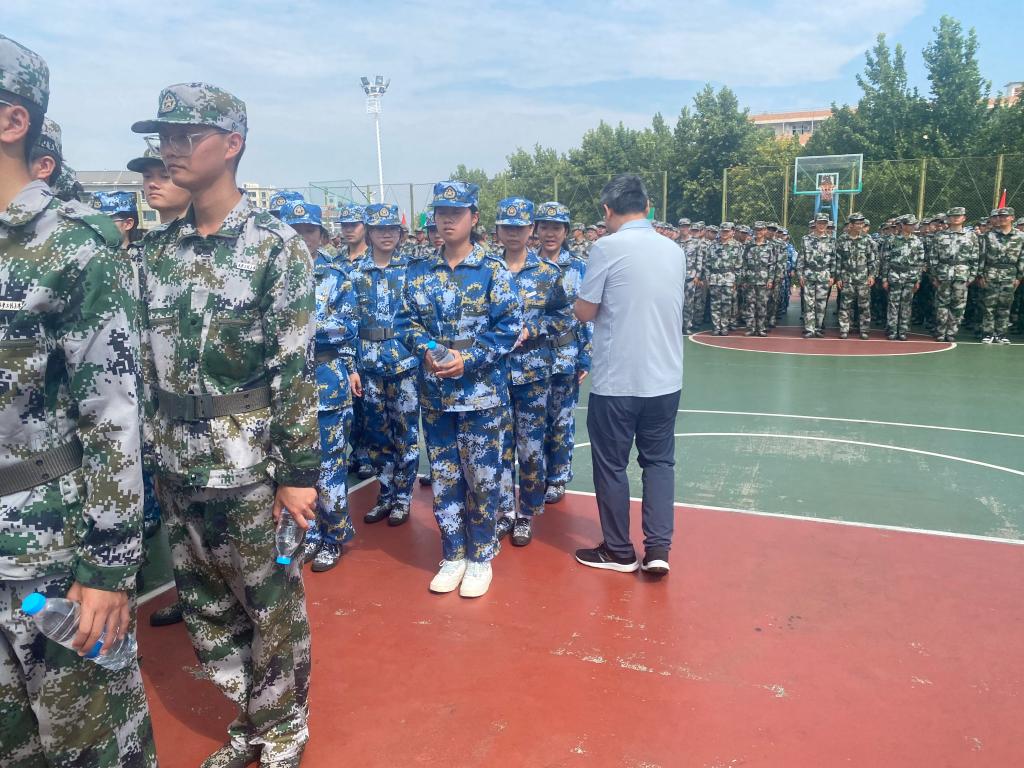 9月6日上午,9499www威尼斯党委书记赵雪曼、院长薛涛、党委副书记赵勇进及全体辅导员来到临潼校区南环操场,检阅我们2023级新生的训练成果,看望慰问军训教官和师生。