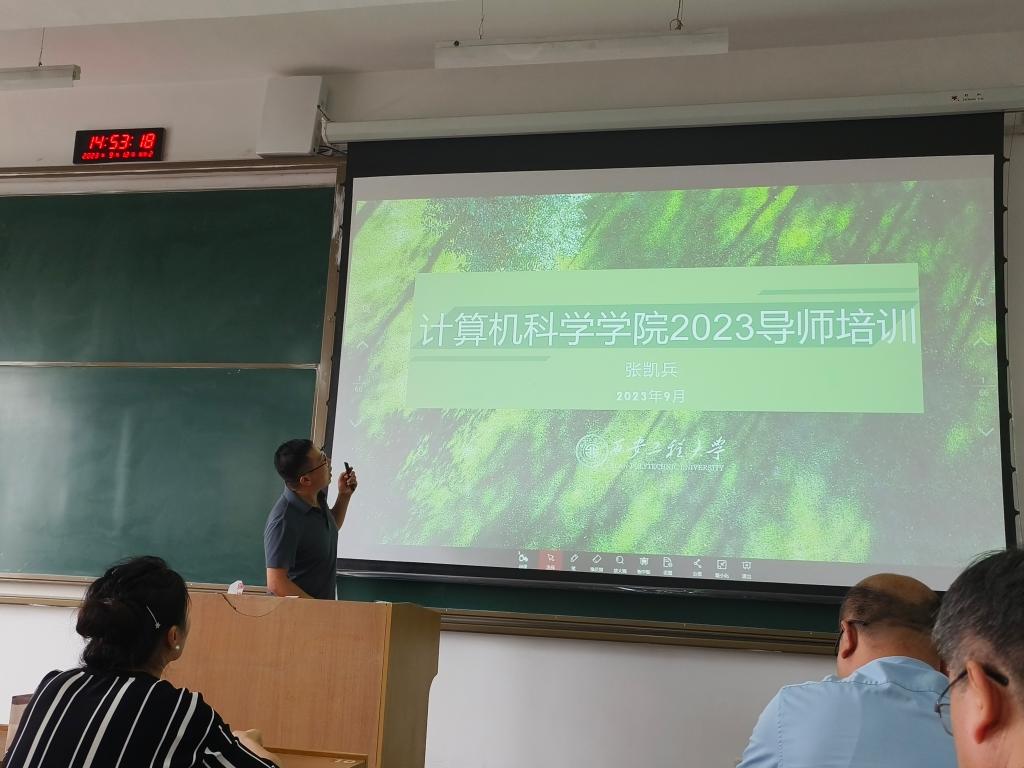 遵守规范、夯实基础,成就精彩学问人生。为了让新生知晓学院研究生培养方案,尽快融入导师团队,同时也作为对导师的一次业务培训,9月12日14:30,学院在临潼校区A-330教室举行了研究生师生见面会暨研究生培养培训会。学院副院长张凯兵、副书记赵勇进、研究生秘书孟雅蕾、研究生导师以及2023级研究生参加了会议。张凯兵向同学们详细介绍了我们研究生的培养模式,包括管理模式、学分制度、毕业要求、学位申请流程等。他希望导师认真阅读新版培养方案,熟悉其中的要点,按照方案规范研究生培养,提升研究生培养质量。针对研究生,他要求同学们及时调整状态,树立学习科研目标,严格遵守学术规范,做好未来三年的学习科研规划。孟雅蕾向同学们详细解读了学院研究生培养过程,对课程、开题、中期检查、盲审、答辩等需要注意的环节做了重点说明。赵勇进从“提升科研成果质量促就业、提高防范意识保安全、重视文明礼仪强素质”等三个方面向学生提了要求。