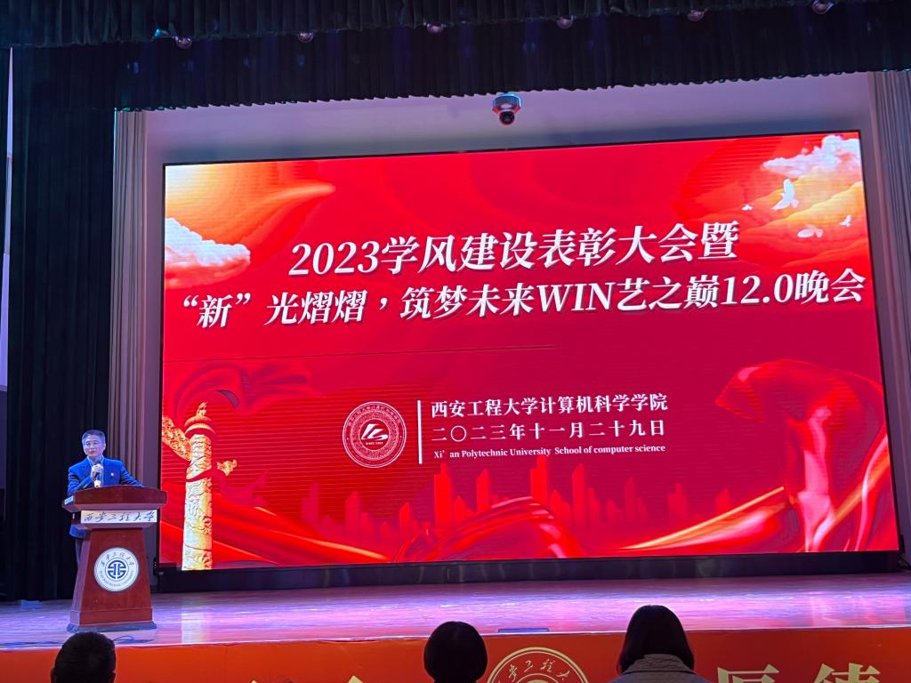 为学习贯彻习近平新时代中国特色社会主义思想和党的二十大精神,全面落实“立德树人”根本任务,树典型,立榜样,促学风,同时用文艺启迪心灵,形成智育和美育交相辉映的生动画面,展现我们学生和谐、拼搏、活泼、阳光的精神风貌,推动积极健康的校园文化建设,9499www威尼斯于2023年11月29日举办了“2023学风建设表彰大会暨‘新’光熠熠,筑梦未来”-WIN艺之巅12.0晚会。校党委委员、学工部部长王志、9499www威尼斯党委书记赵雪曼、院长薛涛、网络与信息化管理处副处长刘枫、纺织科学与工程学院党副书记朱宇军、9499www威尼斯副院长陈亮、学院行政办公室和学生工作办公室全体教师、各系专业教师代表,校学工部、研工部和兄弟学院辅导员,9499www威尼斯2023级本科生和研究生600余人参加了大会。