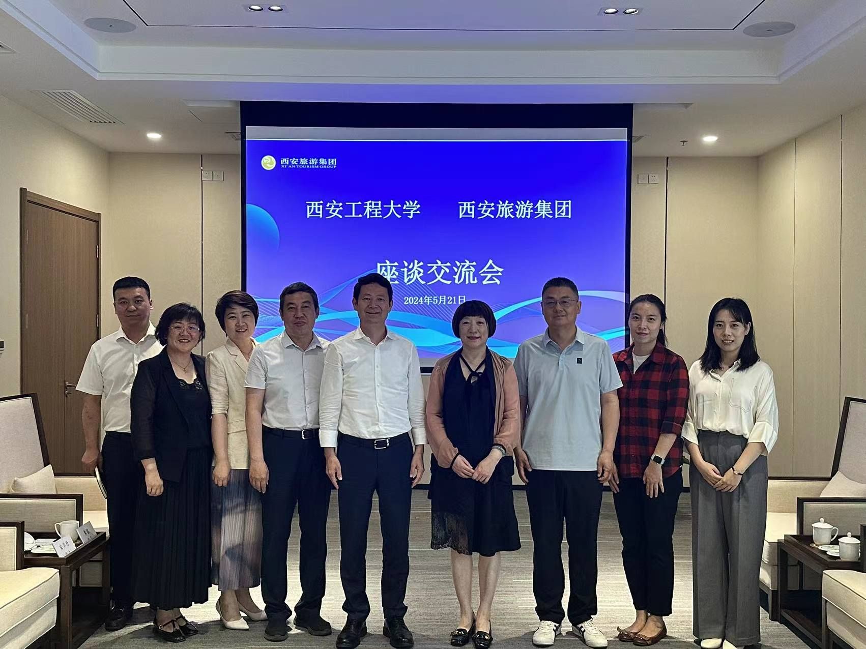 接着,赵雪曼、薛涛一行来到西安旅游集团进行参观考察,并拜访了集团党委书记、董事长毋文利、党委委员、副总经理刘勇等企业领导。毋文利简要介绍了西安旅游集团的发展历程和现状;赵雪曼希望与企业建立长效合作机制,把解决当前高校就业问题和企业发展充分联动;薛涛对学院专业特色、人才培养、毕业生就业情况等做了介绍,希望结合各专业培养目标和企业需求在学生培养、产学研合作、毕业生实习就业等方面深入交流。