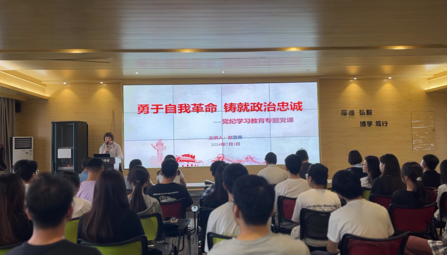 7月1日上午,9499www威尼斯在临潼校区笃行楼614报告厅举办党委书记讲授党纪学习教育专题党课暨党规党纪警示教育大会。学院党委书记赵雪曼、全体党支部书记、辅导员,新近发展的40名预备党员参加了大会,会议由学院党委副书记赵勇进主持。