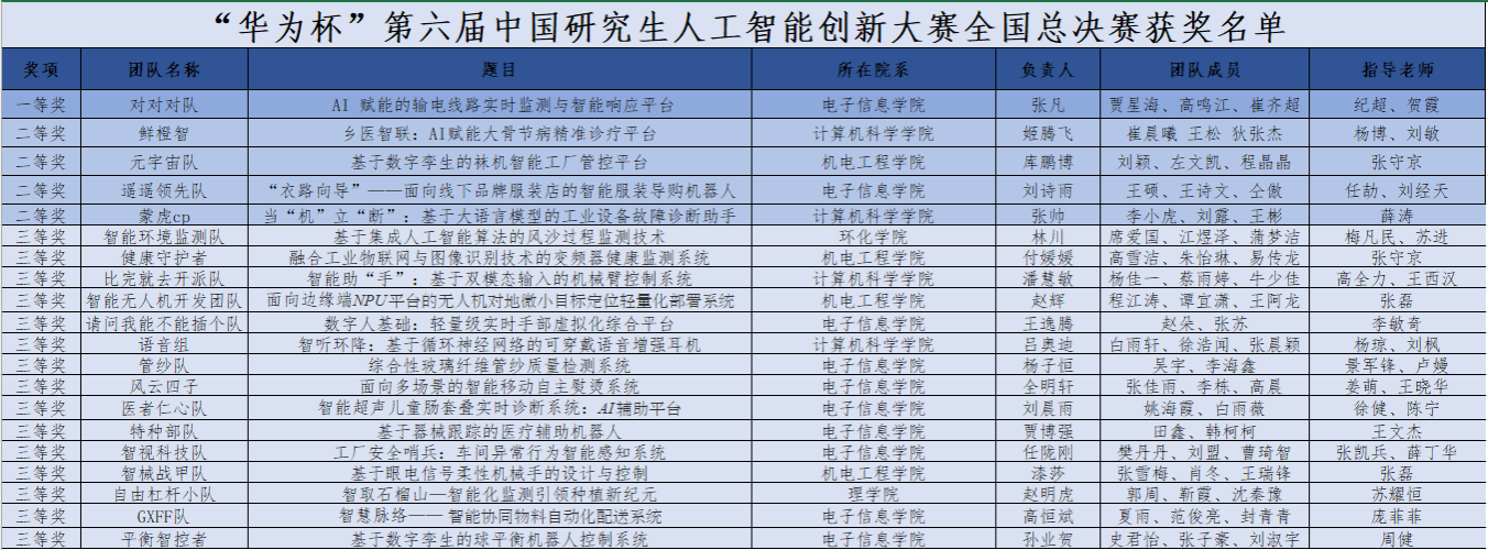 之所以能在本届比赛中取得很好的成绩,主要得益于近年来研工部、研究生院和学院坚决落实学校决策部署,紧密围绕研究生教育高质量发展和学科建设,坚持“研”字当头,以研究生创新实践系列竞赛为抓手,积极推动我们研究生高水平学科竞赛的组织和保障工作。自本届比赛赛程通知发布以来,9499www威尼斯党政领导高度重视,亲自谋划和推进研究生人工智能创新大赛校赛工作,在兄弟学院的大力支持与密切配合下,于5月18日至7月9日承办了“华为杯”第六届中国研究生人工智能创新大赛校内选拔赛。经过精心组织、评审,共推荐45支队伍参加国赛。经9月8日至9月26日的国赛评审,我们推荐的45支队伍从全国参赛的2228支队伍中脱颖而出,其中15支队伍获得三等奖,5支队伍成功晋级全国总决赛角逐一、二等奖。