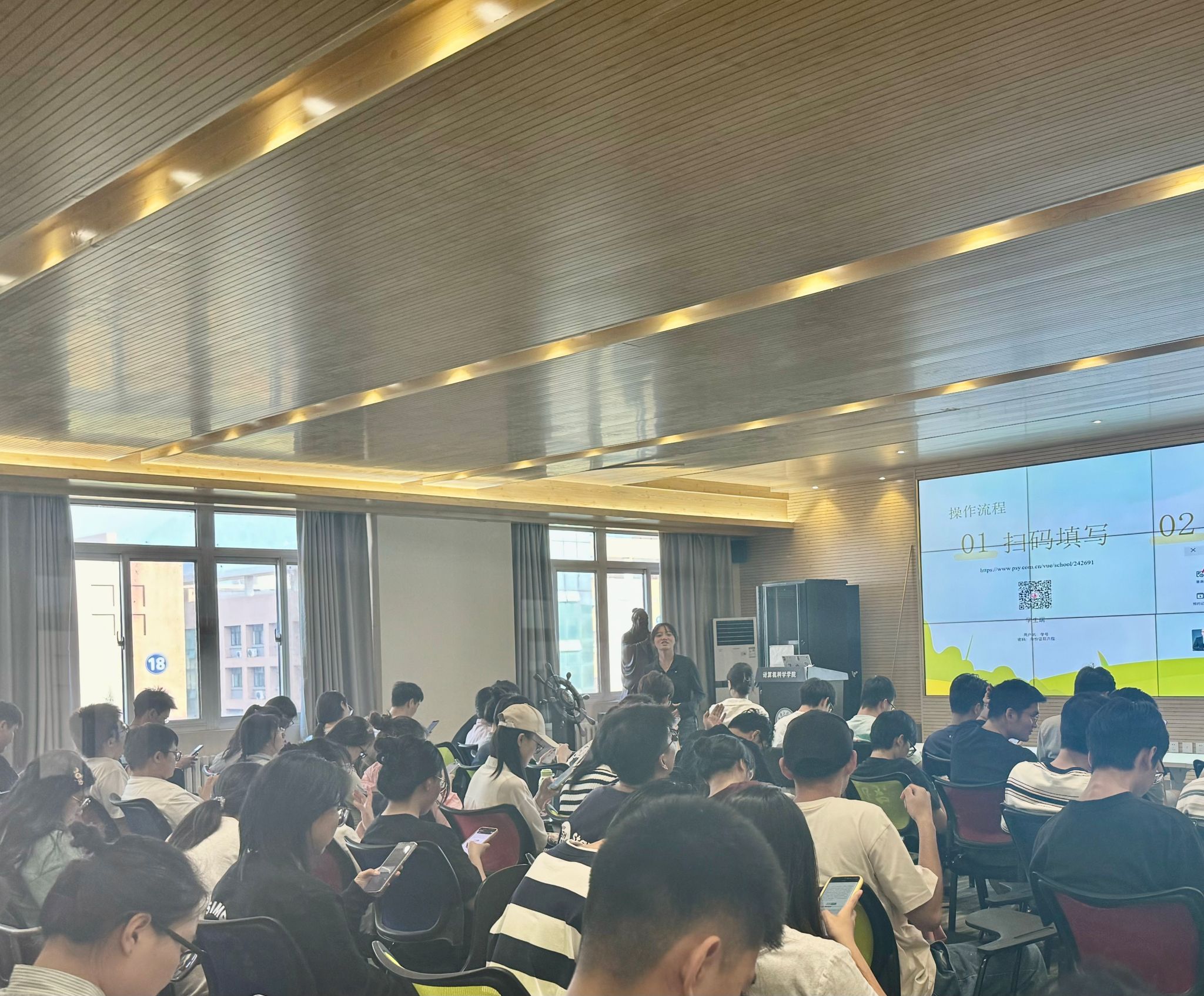 在普查现场,全体2024级研究生严格按照既定的时间安排,完成了包含多项内容在内的心理测评问卷。该问卷涵盖了大学生心理健康普查问卷、道德判断测验以及社交心理等多个维度,旨在全面评估新生们的心理状态与性格特征。测评之后校院两级心理健康教育专家和工作人员将通过测评问卷答案解读出各项指标所映射的学生个体心理状态、性格特点、社交心理等,以便对学生个性化发展提出心理方面的建议。普查现场还介绍了学校和学院心理咨询预约流程,鼓励同学们在遇到心理困扰时主动寻求专业帮助。