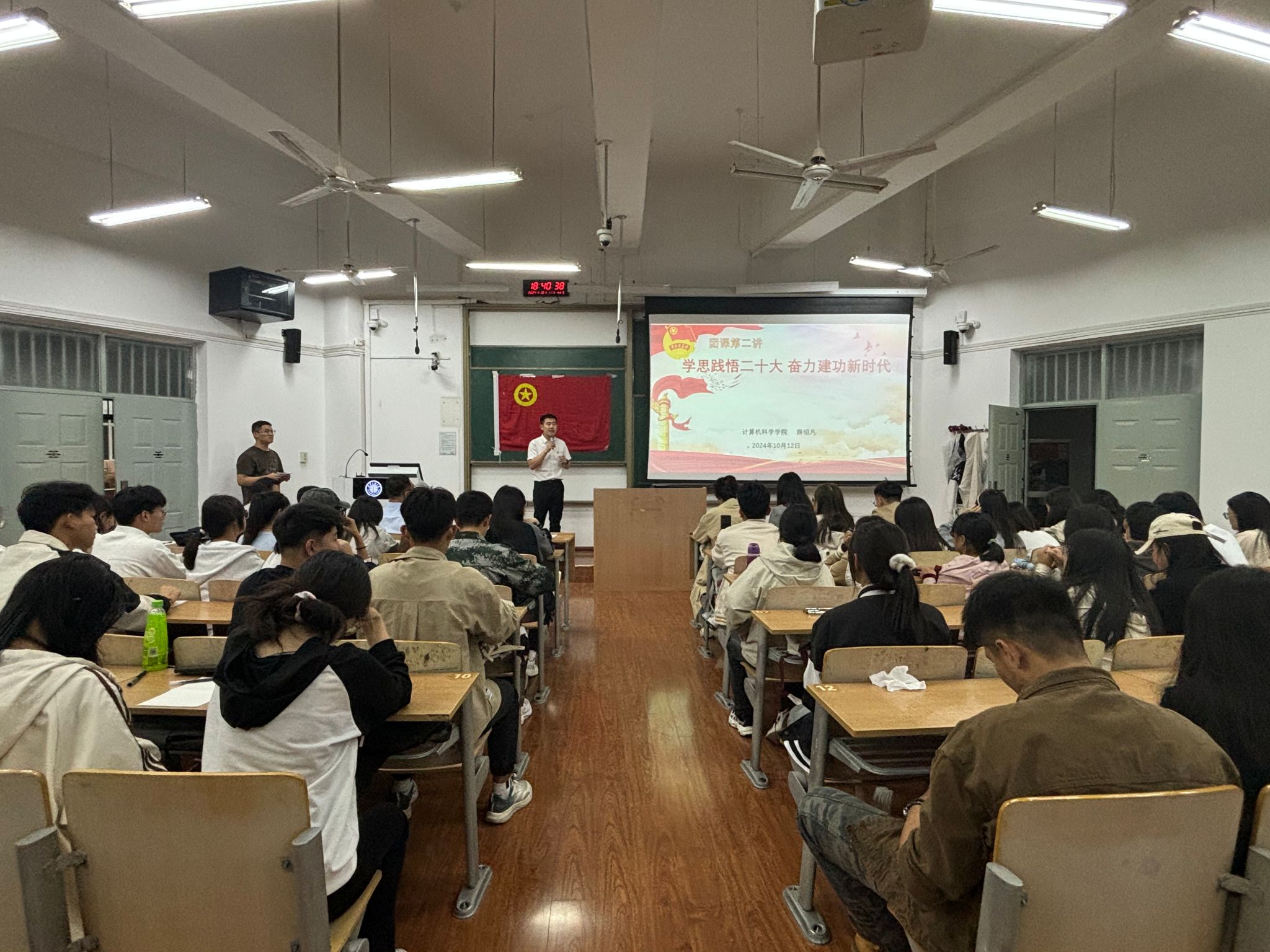 在课堂上他重点讲授了党的二十大报告中关于青年发展的有关内容。他指出,习近平总书记多次强调青年是国家的未来和民族的希望,广大青年要坚定不移听党话、跟党走,怀抱梦想又脚踏实地,敢想敢为又善作善成。全体团员青年要立志做有理想、敢担当、能吃苦、肯奋斗的新时代好青年,让青春在全面建设社会主义现代化国家的火热实践中绽放绚丽之花。他结合计算机专业学习和就业情况,鼓励大家要努力学习专业知识,夯实专业基础,顺应科技发展大势,练就过硬本领。他强调,作为计算机专业的学生要勇担民族复兴大任,在民族复兴的接续奋斗中创造出属于自己的业绩。