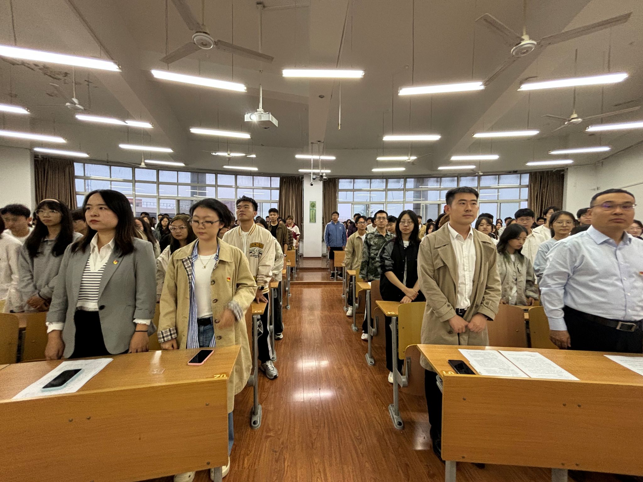 大会在嘹亮的团歌声中开始。赵勇进首先宣布了聘任干部名单,并向与会团学组织干部介绍了新一届团学干部聘任情况。随后,他与各位老师一同为聘任团学组织干部颁发了聘书。他勉励新一届团学干部既要继承和发扬学院团学组织的优良传统,又要坚持守正创新。他强调,新时代青年人应勇担社会责任,边学习、边实践、边提高,把个人发展与党和国家的前途命运紧密连结,为党和国家事业发展、为中华民族伟大复兴贡献青春力量。