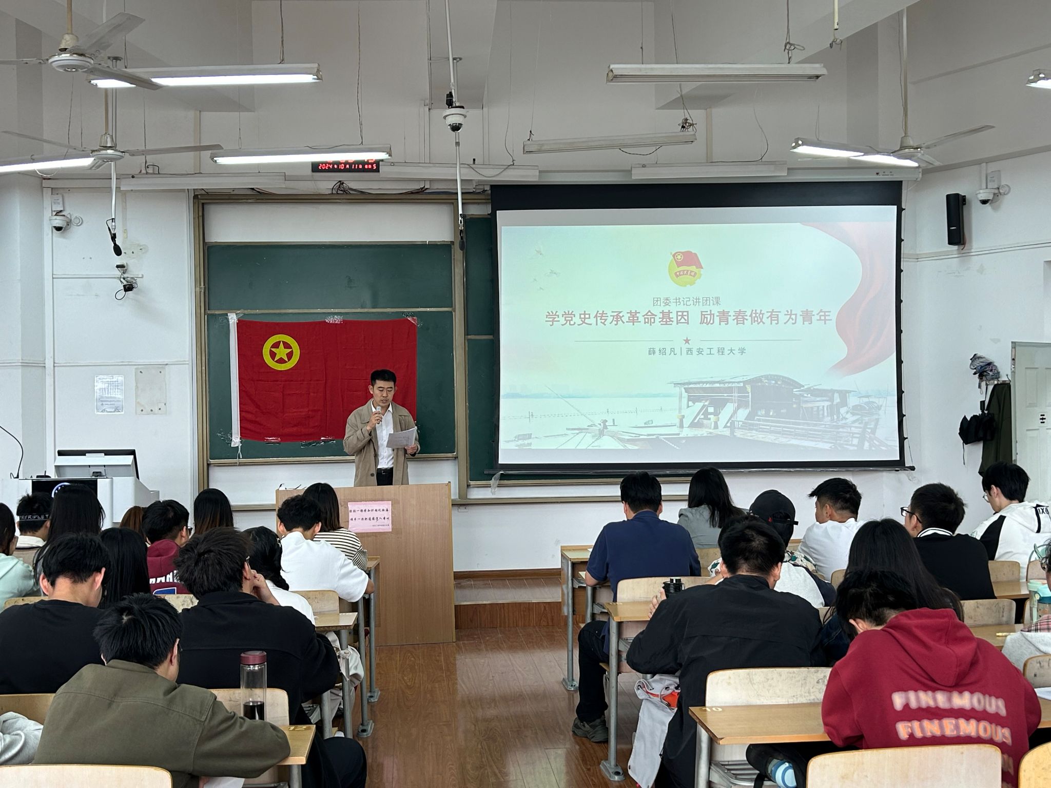 2024年10月10日,9499www威尼斯在临潼校区B137教室举办2024级新生主题团课,题目是“学党史传承革命基因,励青春做有为青年”。2024级全体本科新生参加了团课,团课由学院团委书记薛绍凡主讲。